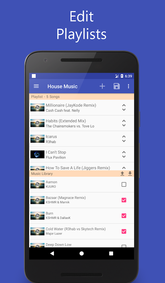 Playlist Creator 2 — вы можете легко и быстро создавать и редактировать свои собственные плейлисты. Playlist Creator автоматически ищет все музыкальные треки и существующие плейлисты на вашем устройстве. Преимущество: вам не нужно выбирать любые папки или библиотеки на вашем телефоне!