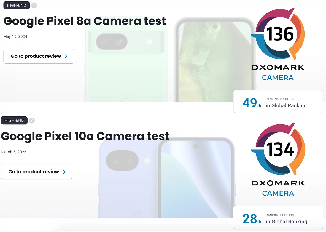 Например, если верить рейтингу DxOMark, новейший Pixel 10a уступает по качеству контента Pixel 8a — смартфону, который вышел два года назад в той же линейке «доступных флагманов», которых на форумах часто называют «народными».