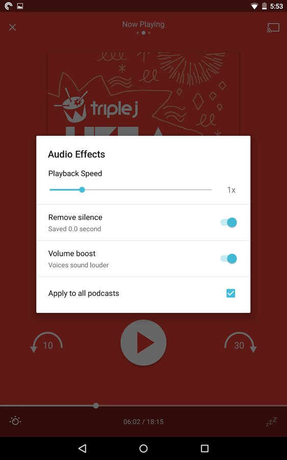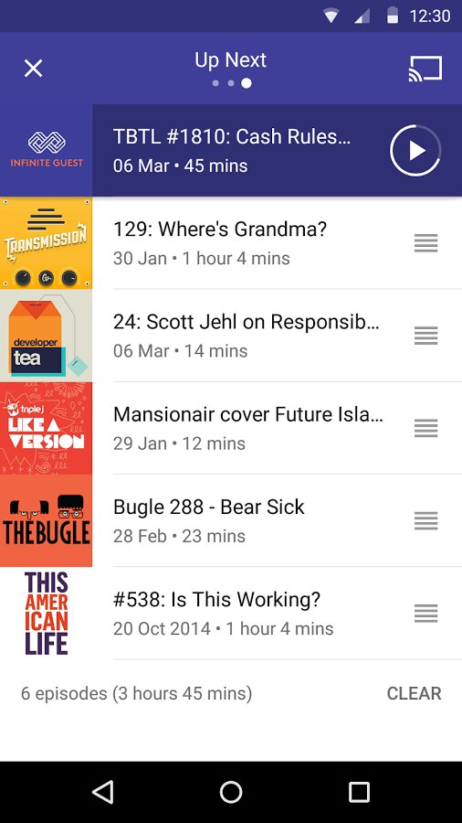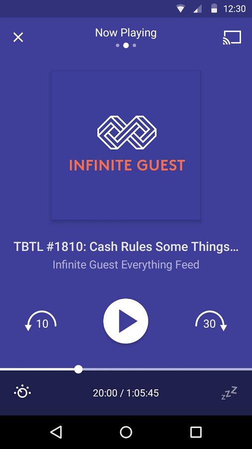 - Синхронизация: Подписки, Up Next, история прослушивания, воспроизведение и фильтры надежно хранятся в облаке. Вы можете продолжить прослушивание с того места, на котором остановились, на другом устройстве и даже в Интернете.