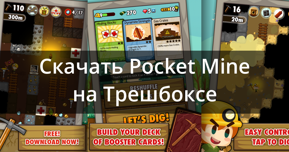 Pocket Mine — увлекательных хит от создателей Extreme Road Trip. Пришло время копать! Спускайте все ниже и ниже пока не достигните золота, драгоценных камней, сундуков с сокровищами и редких артефактов. Ведите торговлю с своими друзьями, что бы собрать полную коллекцию музейных экспонатов и получить сладкие награды. В Игре очень увлекательный геймплей, заводная музыка и простое управление .
