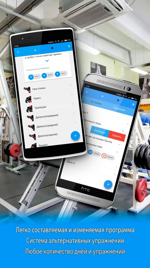 - Готовые программы тренировок для мужчин и девушек для занятий дома и в тренажерном зале.