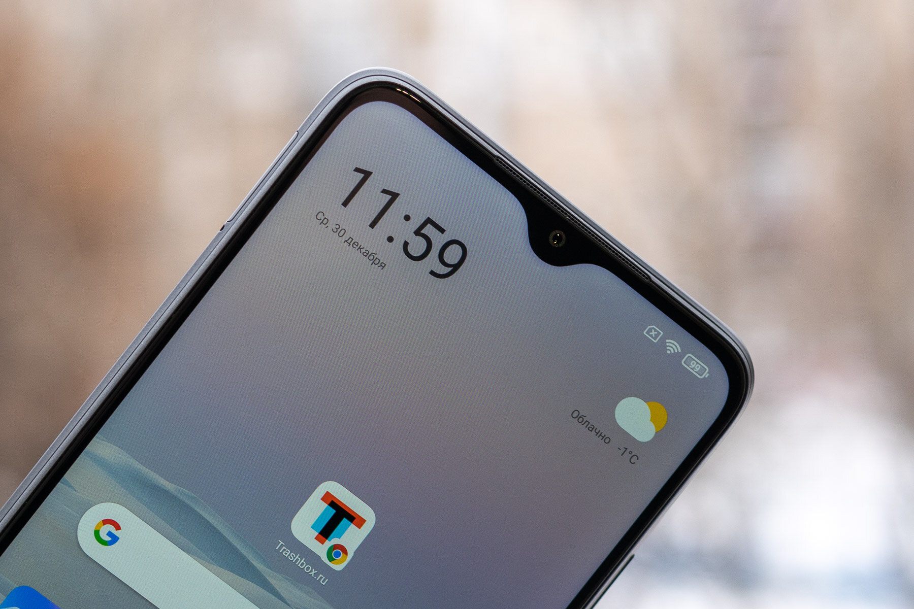 Cкруглённые углы, в меру тонкие рамки и аккуратная капля под камеру — всё это добавляет облику современности. После первого знакомства нареканий к экрану нет, это очень качественный IPS с хорошей цветопередачей и абсолютными углами обзора. Яркость в автоматическом режиме достигает внушительных 450 кд/м², а минимальный уровень, измеренный колориметром, равняется 2 кд/м².