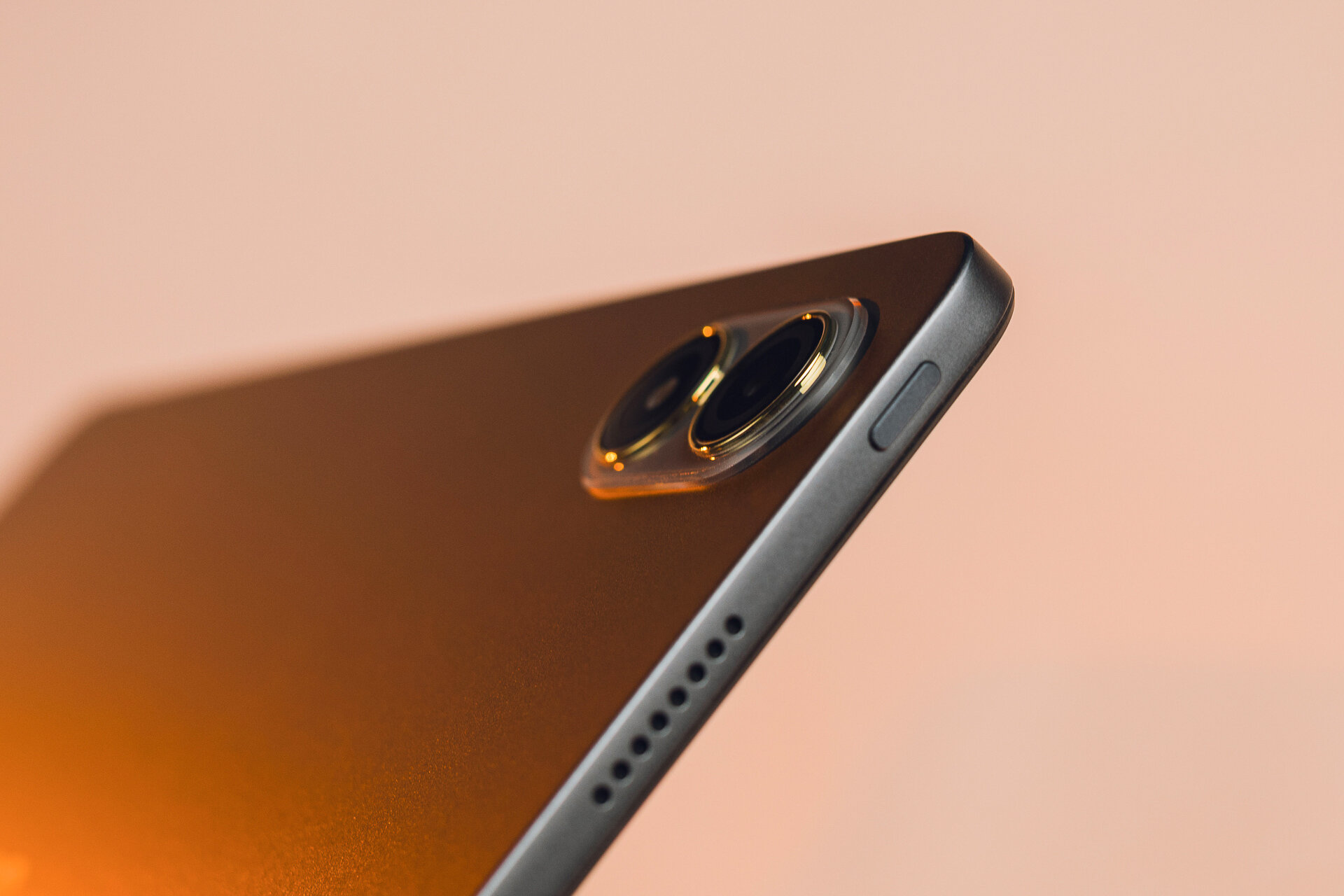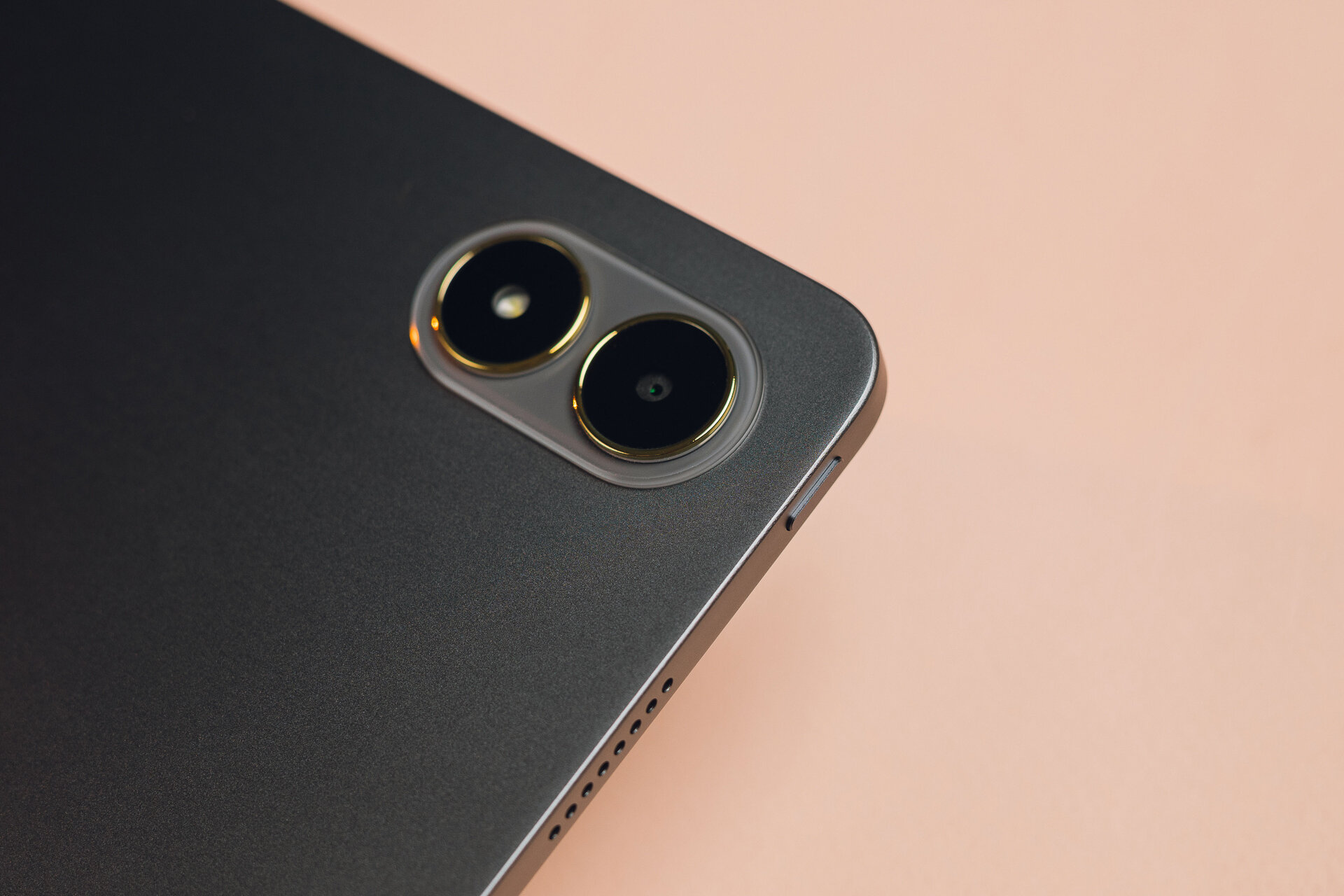 Но в целом внешность POCO Pad M1 не кажется какой-то необычной, всё стандартно в нейтральном смысле этого слова: плоские грани, матовая отделка, выступающий за пределы корпуса блок камеры и вспышки (этот островок оформлен в стиле камер iPhone 16/17). Предлагаю рассмотреть грани детальнее: если держать планшет в вертикальной ориентации, то сверху справа расположена кнопка блокировки, а на верхней части правой грани размещена качелька громкости. К сожалению, сканера отпечатков пальцев в этом планшете нет — как по мне, это недостаток. Кто-то скажет, что в планшете для фильмов он не то чтобы был остро необходим, но я предпочитаю использовать один Google-аккаунт на всех своих устройствах, так что если кто-то получит доступ к планшету, то увидит информацию и со смартфона, в том числе в «Google Фото», облачном хранилище, офисных документах и тому подобном — приходится постоянно вводить код-пароль при разблокировке, и это неудобно.