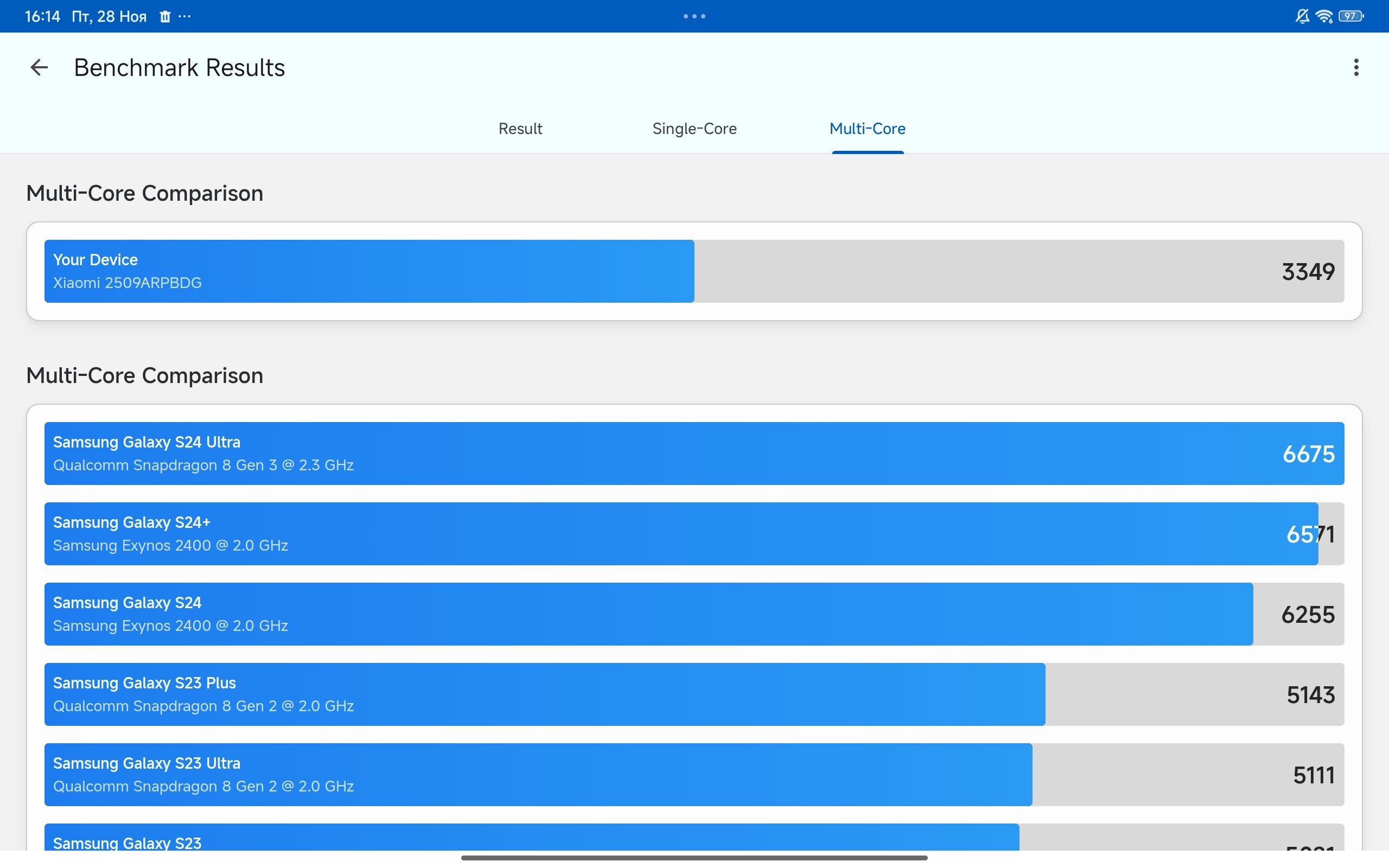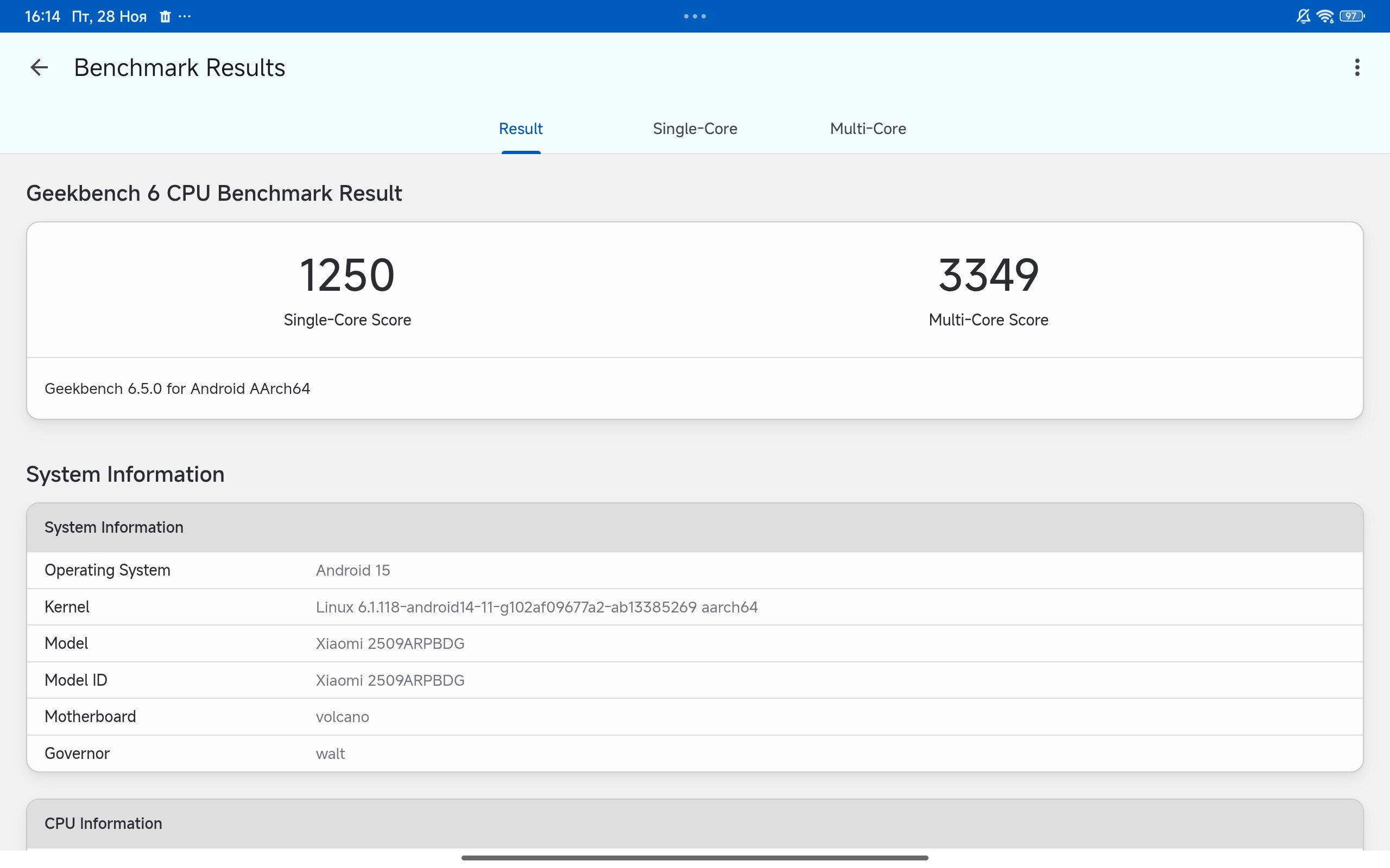 POCO выбрала Snapdragon 7s Gen 4 чипом для Pad M1, и её решение, пожалуй, правильное. Этот «кремний», построенный по 4-нанометровому техпроцессу и оснащённый восемью ядрами с частотой до 2,7 ГГц, находится в средней позиции модельного ряда Qualcomm, и результаты у него соответствующие (в связке с 8 ГБ оперативной памяти типа LPDDR4X, которую можно расширить виртуальной на 4/6/8 ГБ, и накопителем на 256 ГБ типа UFS 2.2).
