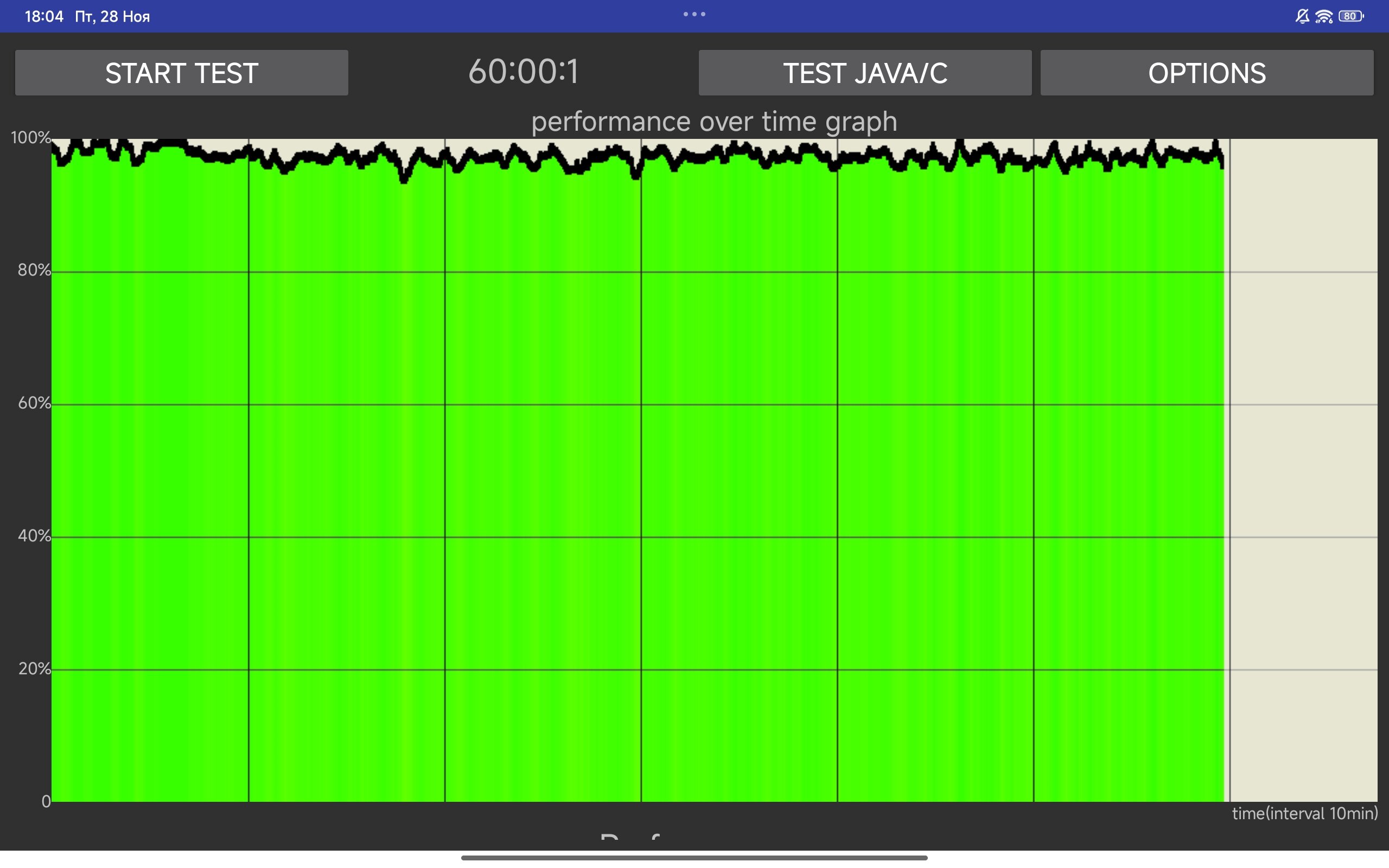 Хорошая новость в том, что чипсет не перегревается, благодаря чему ему не свойственен троттлинг — производительность процессора не сбрасывается по мере работы под интенсивной нагрузкой. К сожалению, стресс-тесты графики у меня не запустились, но я уверен, что там тоже нет никаких проблем с троттлингом.