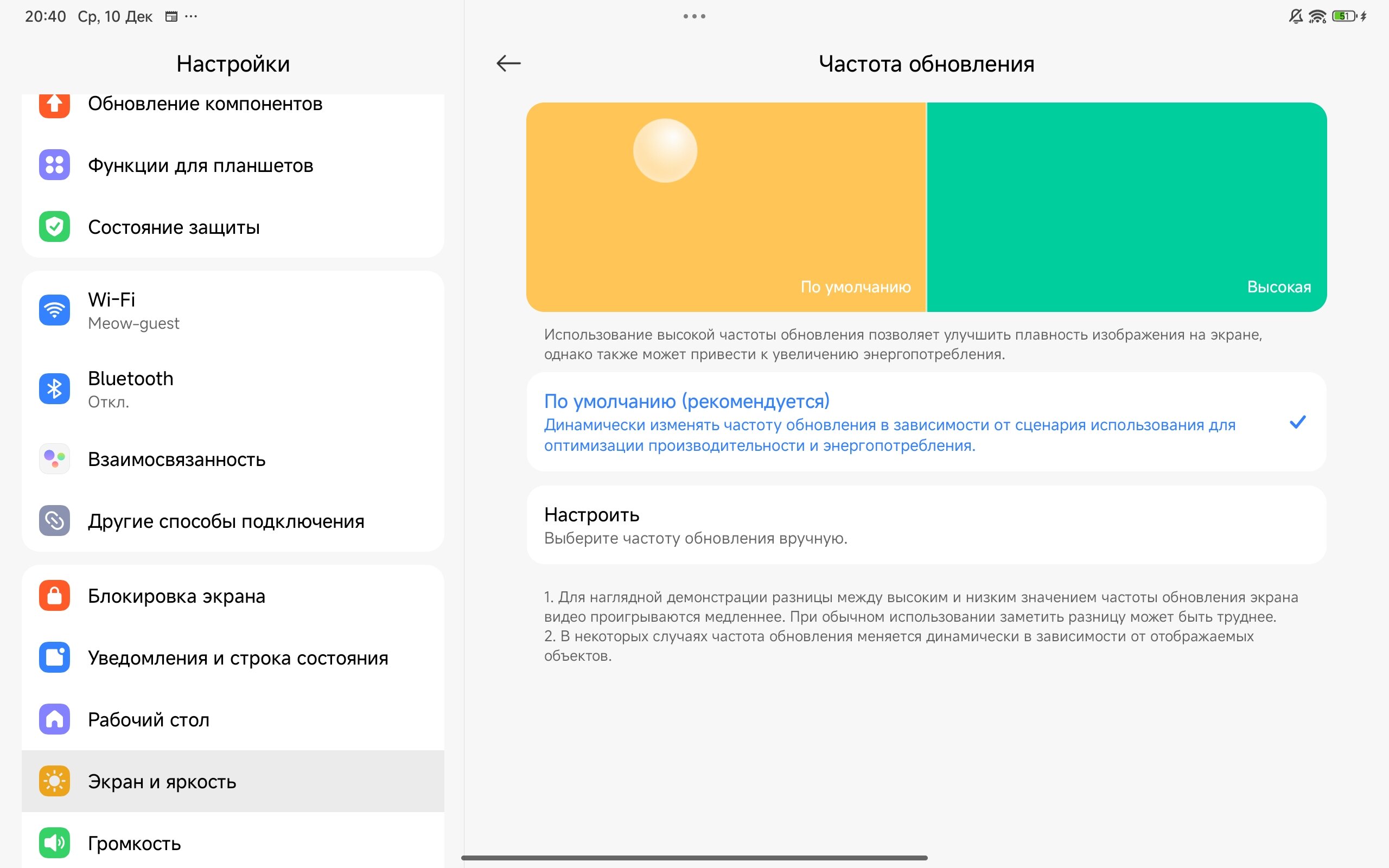 Приятно, что прошивка позволяет зафиксировать частоту обновления дисплея на стандартных 60 Гц для некоторых приложений даже при использовании глобального режима 120 Гц — можно чуть сэкономить заряд аккумулятора в тех играх и программах, где повышенная частота не особо нужна.