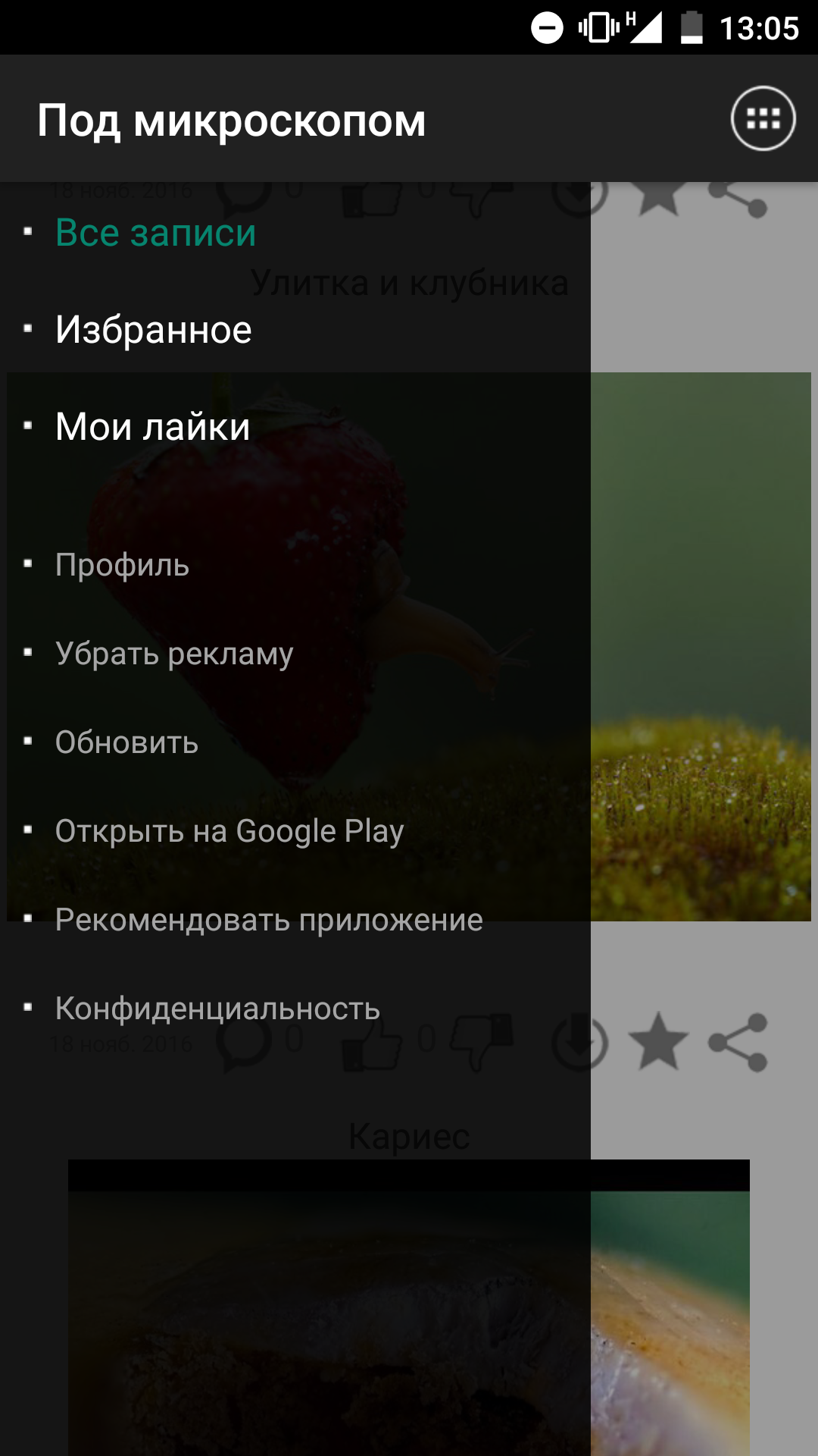 Понравившиеся записи можно комментировать и оценивать. Все понравившиеся картинки можно сохранять в галерее устройства в папке приложения. Ты можешь делиться записями с друзьями через социальные сети Facebook*, Вконтакте, Одноклассники, Viber, WhatsApp* а так же другие установленные на устройстве приложения. Ну и конечно, ты можешь оставлять лайки и сохранять записи в избранное.