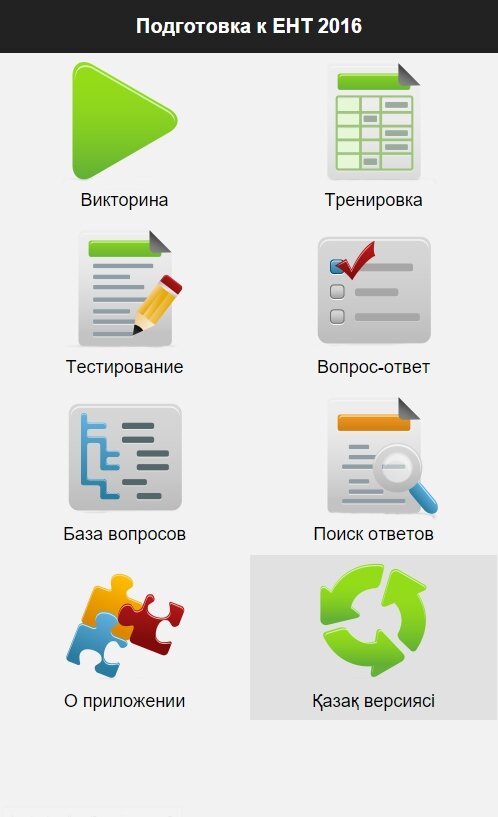 Бесплатная подготовка к ЕНТ 2016. С помощью четырех режимов подготовки и нашей огромной базы вопросов на двух языках Вы можете совершенно бесплатно подготовиться к ЕНТ 2016 и набрать высший балл.