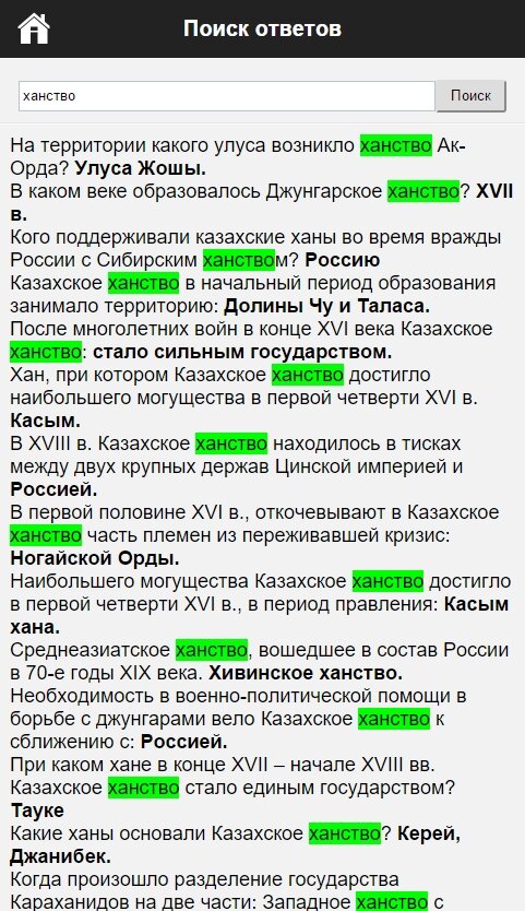 4) Вопрос ответ. Выводит список вопросов и правильные ответы на них.