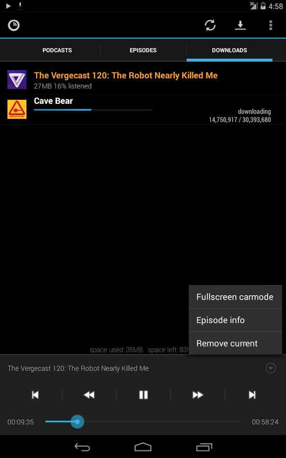 Podkicker — удобный минималистический менеджер подкастов. Подписываемся на RSS-рассылки и слушаем радиопередачи или смотрим тв-программы в удобное для вас время.