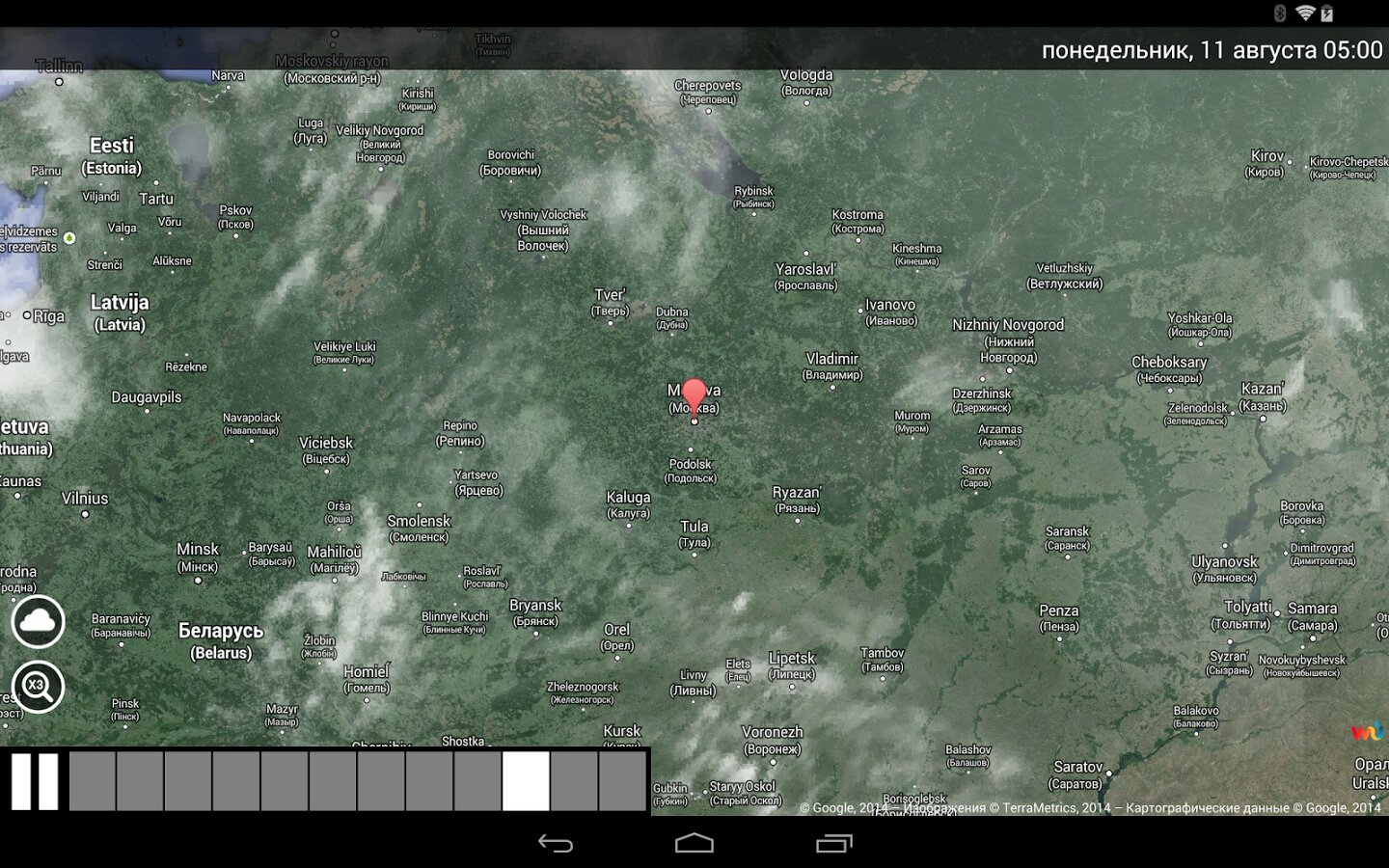- Анимации спутниковых и радиолокационных карт