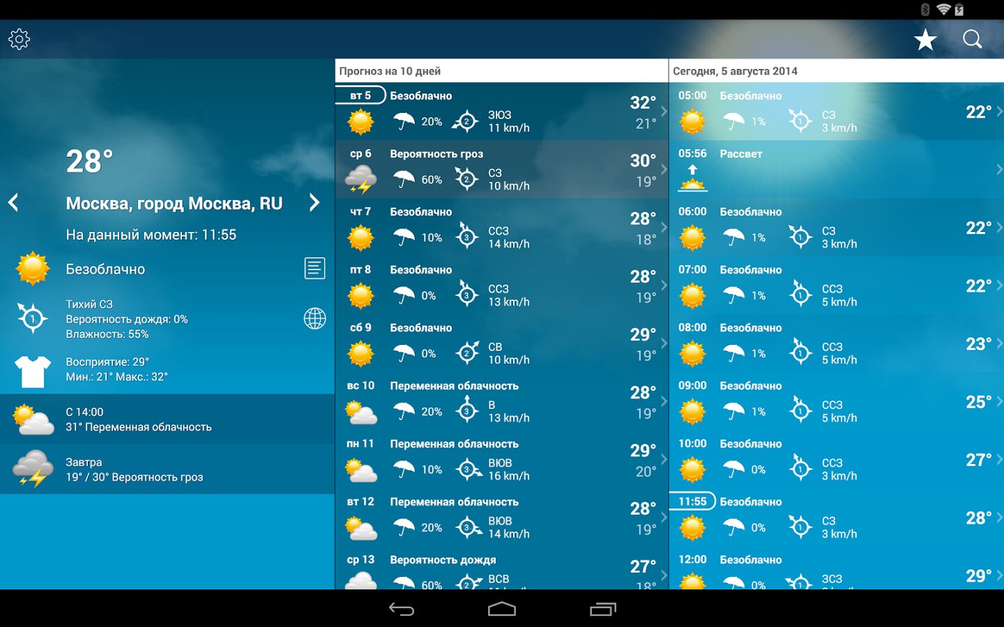 - Точный почасовой прогноз на ближайшие 10 дней