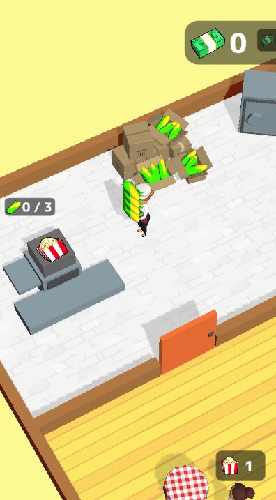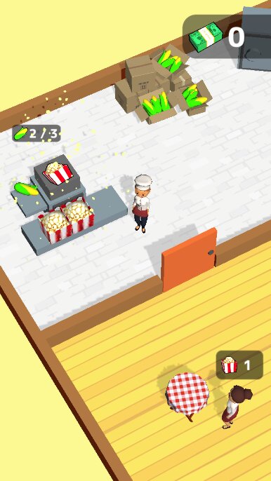Popcorn Universe — зарабатывайте деньги, продавая попкорн клиентам. Положите кукурузу в машину для приготовления попкорна. Доставьте попкорн клиентам. Когда получите деньги, сохраните их в сейфе.