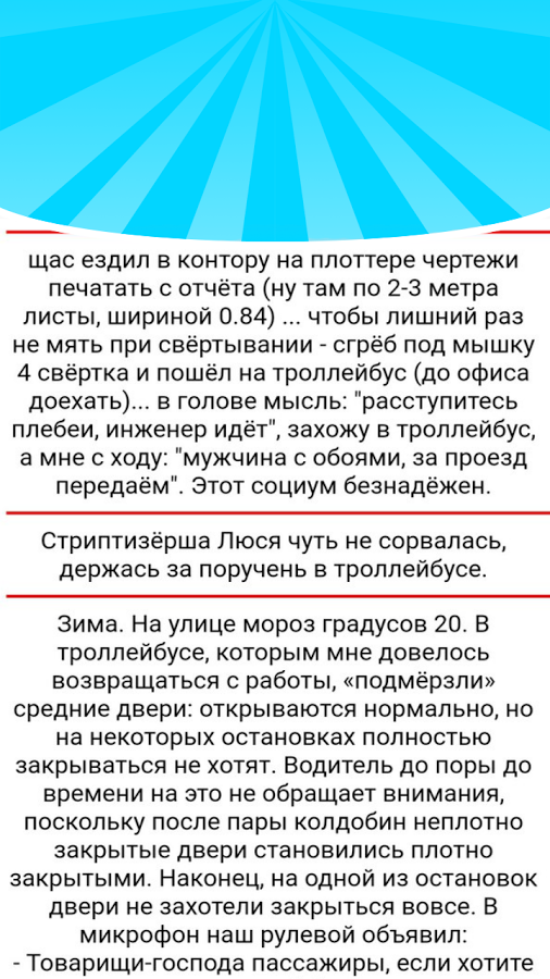 Если вам нужны анекдоты без интернета тогда это приложение именно для вас. Хотите почитать что-нибудь еще? Тогда вы можете посмотреть: Цитаты, прикольные стишки, тосты, статусы прикольные, смс, прикольные смс, Адама и Еву, ФСБ, Сталина, Ленина, Навального, Обаму…