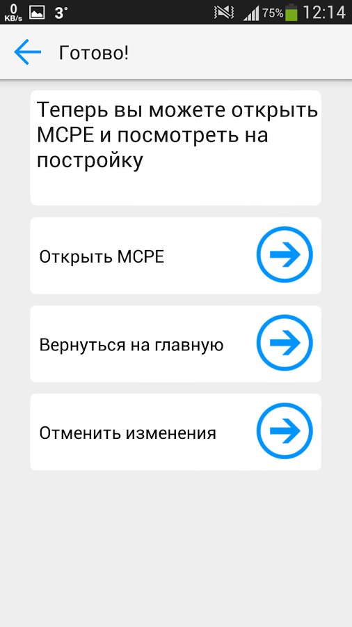 Постройки для Minecraft PE — позволяет вам строить что угодно быстро и просто! Мечтаете о крутом космическом корабле на вашей карте? Или же об огромном средневековом замке? Теперь ваши мечты станут реальностью всего за один клик! Удивите ваших друзей с помощью этого приложения!