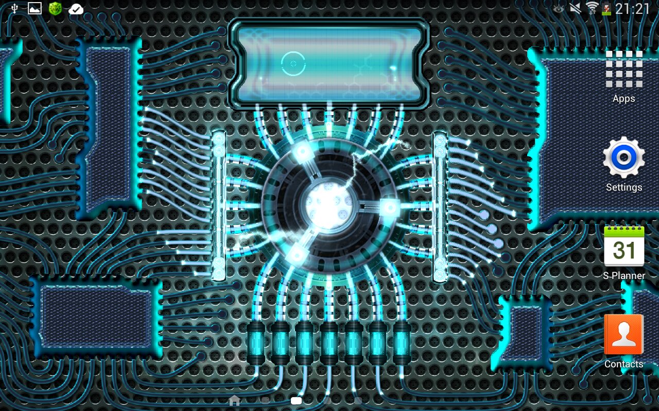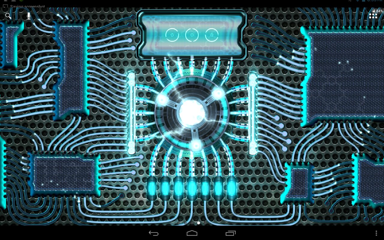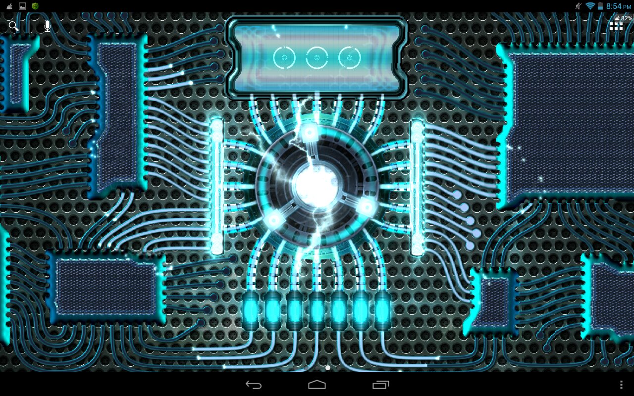 Установите эти обои на телефон или планшет, чтобы увидеть как функционирует футуристический мобильный гаджет оснащенный энергетическим генератором. После активации устройства можно наблюдать, как неспешно разгоняется генератор и достигнув рабочей мощности начинает питать энергией всю систему. Энергия растекается по основным каналам на распределители, а затем постепенно расходится по всем узлам и вычислительным блокам. Мощь генератора так велика, что избыточная энергия сбрасывается в виде змеящихся молний и окутывает центральное ядро вихревым полем.