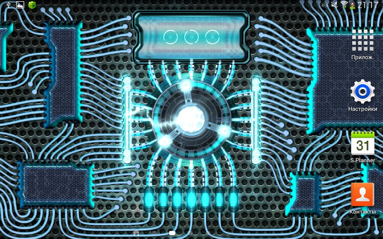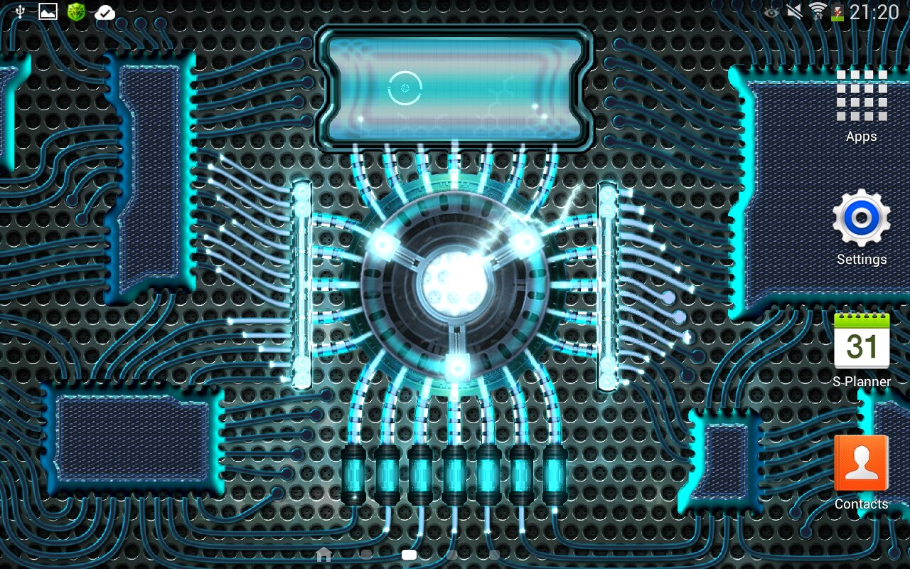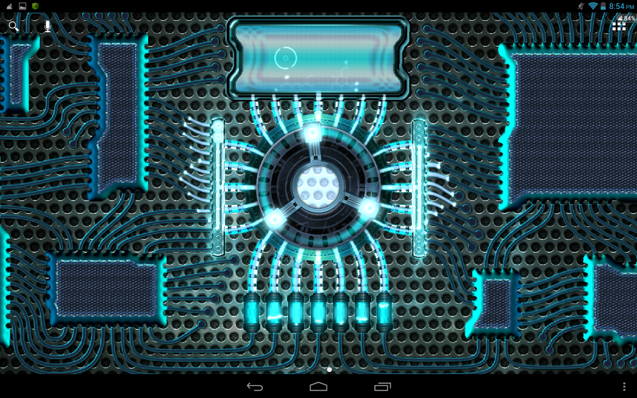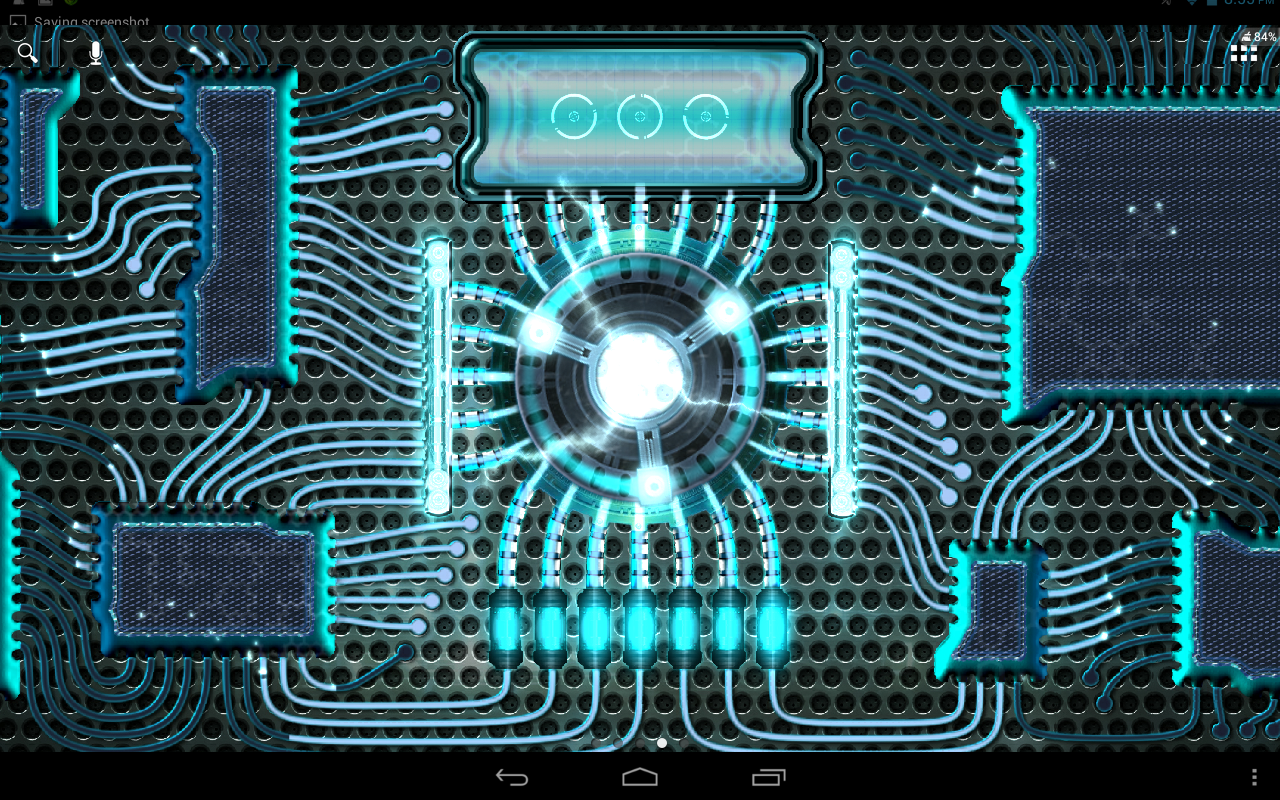 Установите эти обои на телефон или планшет, чтобы увидеть как функционирует футуристический мобильный гаджет оснащенный энергетическим генератором. После активации устройства можно наблюдать, как неспешно разгоняется генератор и достигнув рабочей мощности начинает питать энергией всю систему. Энергия растекается по основным каналам на распределители, а затем постепенно расходится по всем узлам и вычислительным блокам. Мощь генератора так велика, что избыточная энергия сбрасывается в виде змеящихся молний и окутывает центральное ядро вихревым полем.