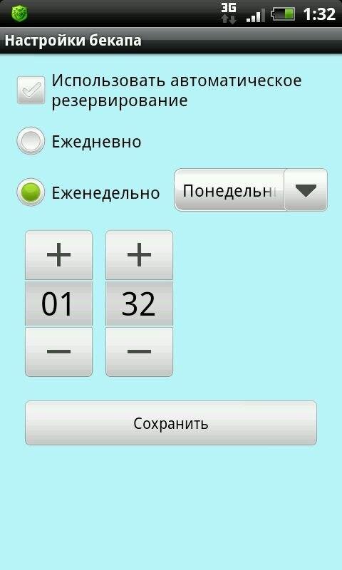 - Автоматическое резервирование по расписанию ежедневно/еженедельно/ время.