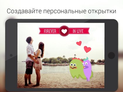 - Возможность отправить открытку: Facebook*, twitter, e-mailОткрытки, созданные в приложении, не оставят равнодушными ни детей, ни взрослых. Позвольте Вашей фантазии проявить себя на 100%!