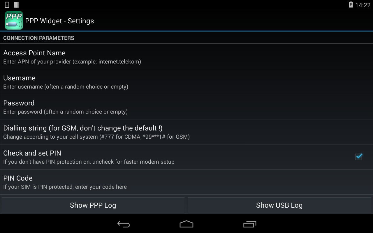 Виджет является внешним интерфейсом для PPP-демона, который позволяет обеспечить доступ в Интернет с помощью почти любого устройства с модемом, включая мобильные телефоны.