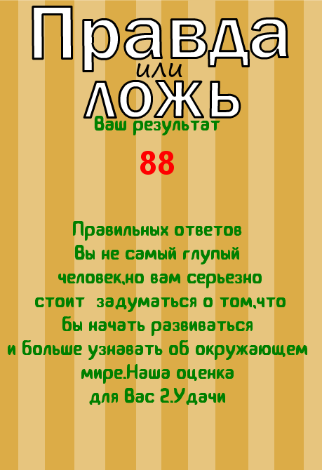 В конце вас ждет результат и оценка с нашими пожеланиями для Вас.