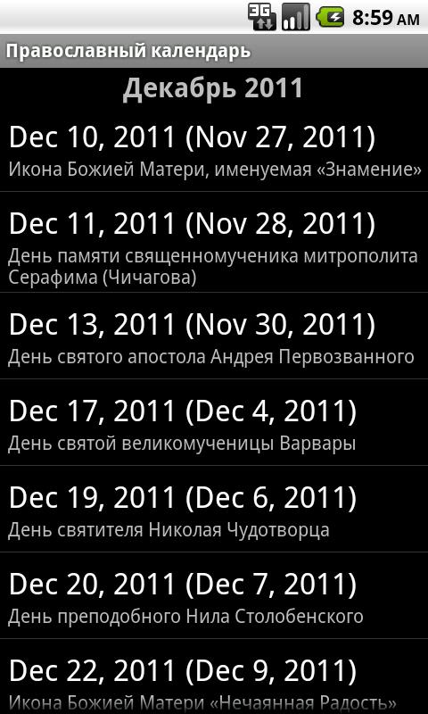 Даны подробные описания событий календаря, причем для этого не нужен интернет – все уже заложено в программе.