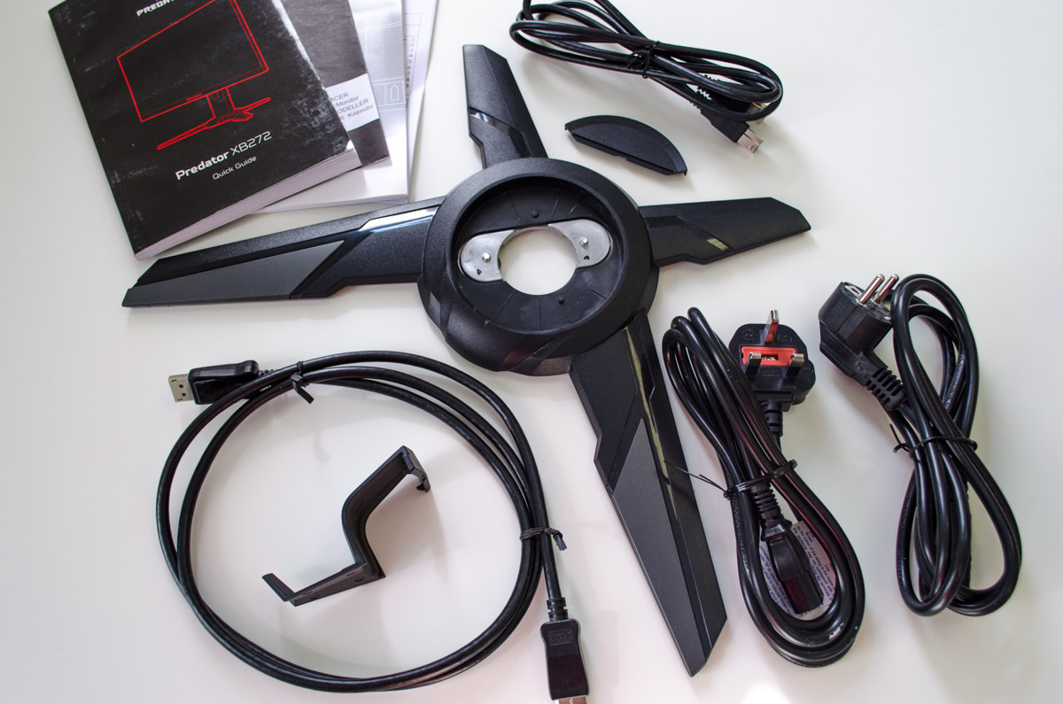 Predator XB272 прибыл на тест в черно-красной коробке с изображением монитора и кратким перечислением технических характеристик новинки, впервые представленной на CES 2017. Наконец-то, этот игровой монитор можно приобрести в России и протестировать. Так что не будем задерживаться на упаковке и взглянем по ближе на ее содержимое.