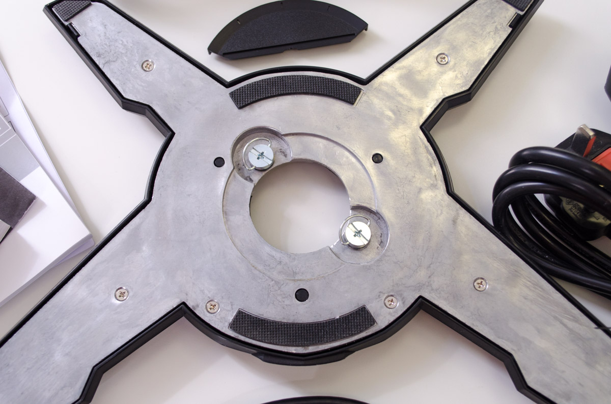 При этом, конструкция кронштейна все-таки не очень удачна. Он слегка отклонен назад. Это сделано для большей устойчивости, но, в результате, центр тяжести всей конструкции оказался не по центру треноги, и вес приходится на пару задних ножек, в то время, как передние еле заметно отрываются от плоскости стола. Вряд ли это спровоцирует падение, но монитор стоит неустойчиво и раскачивается при прикосновениях.