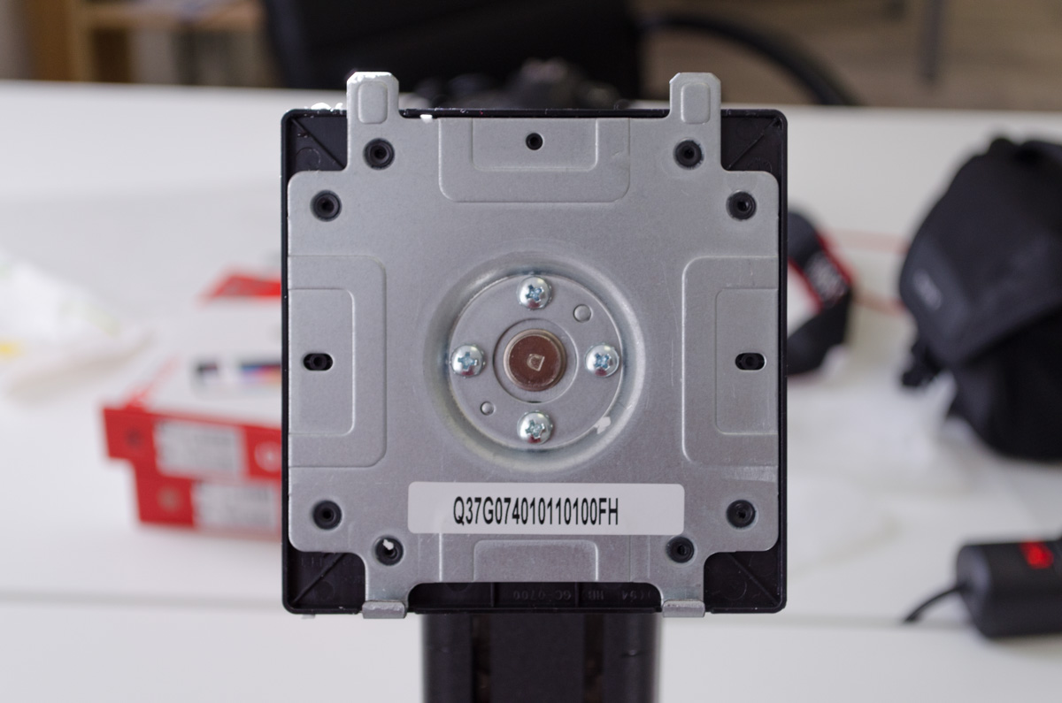 Монитор поставляется разобранным, однако процедура установки вовсе не хитрая. Отвертка для сборки не понадобится. К крестовине подставки прикручивается кронштейн. На место устанавливается пластиковая заглушка. Затем, из пенопластового ложа вынимается экран и устанавливается на быстросъемное VESA-крепление.