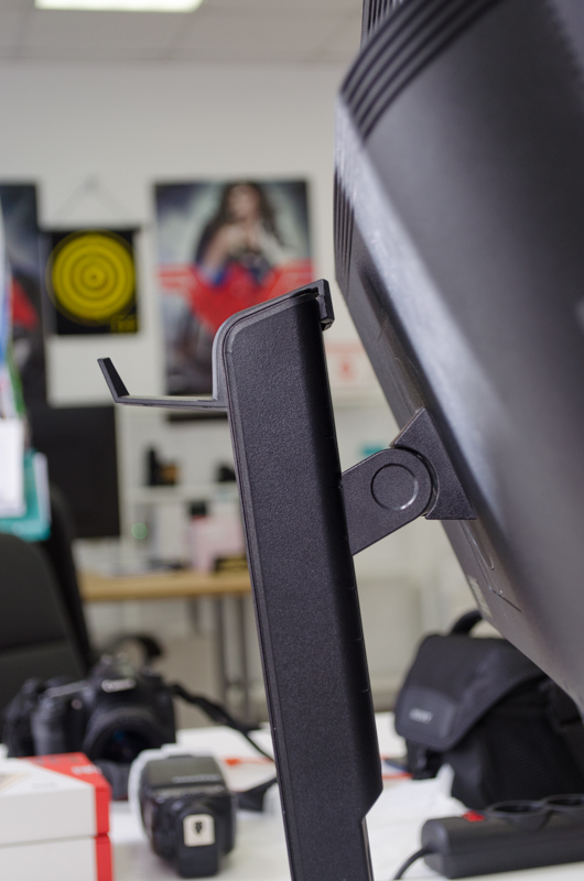 Подготовленный к работе монитор остается отрегулировать по высоте и наклону. Панель разворачивается на 45 градусов вправо и влево, регулируется по высоте — вплоть до 115 мм и наклоняется, в пределах 25 градусов. Кроме того, монитор поворачивается в портретное положение, что для геймерского решения достаточно необычно.