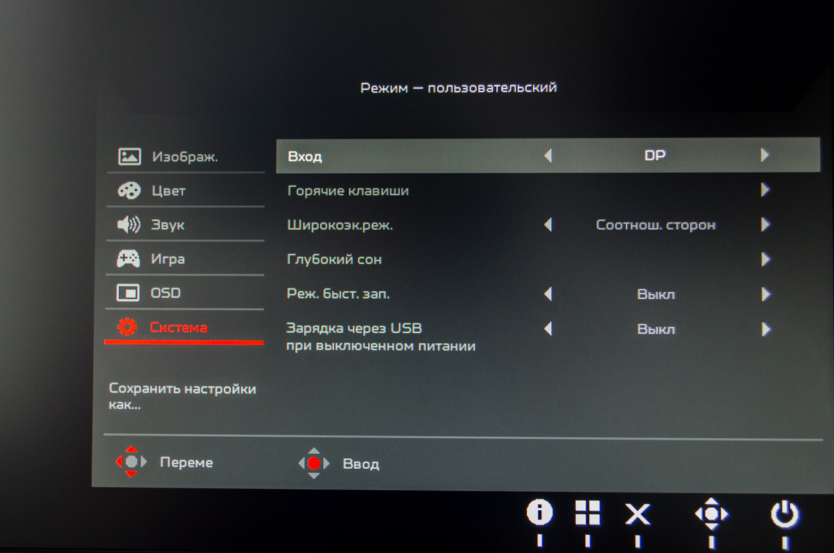Разделы «OSD» и «Система» вряд ли будут часто востребованы. В первом настраивается само экранное меню, а во втором стоит обратить внимание на режим быстрого запуска монитора и управление силовым USB-портом.
