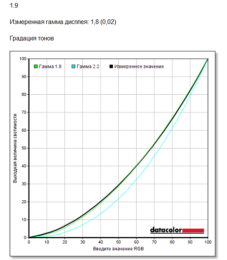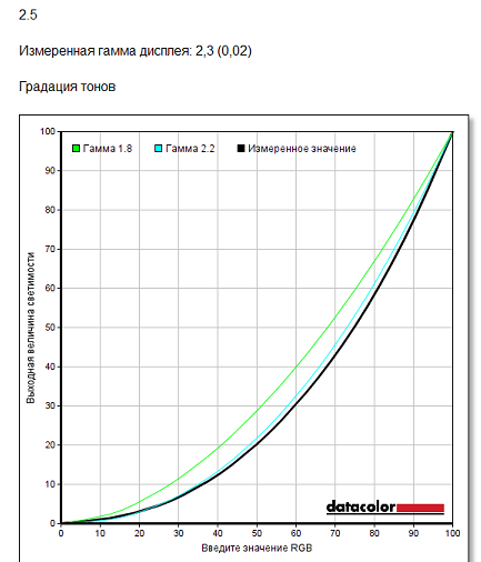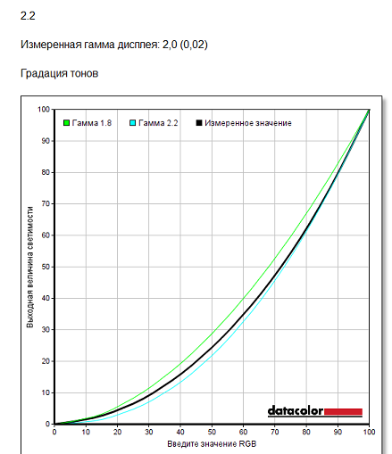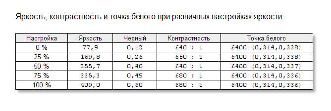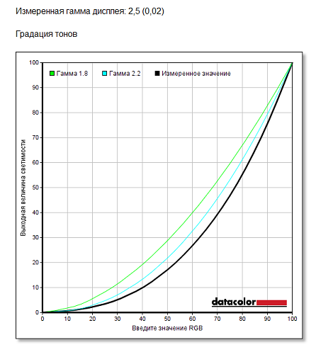 Гамма-кривые, при большинстве настроек, в пределах нормы, хотя выставлены они и не точно. Заявленная контрастность дисплея составляет 1000:1, но в наших замерах соотношение составило 670: 1.