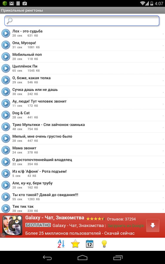 Прикольные рингтоны — предлагает Вашему вниманию большой список (более 300) веселых и прикольных рингтонов. В нем Вы найдете рингтоны для своих родных и любимых – мамы, папы, сестры, брата, детей, девушки, парня, друга (подруги) так и просто смешные рингтоны, которые Вы сможете установить для входящих звонков, SMS или будильника.