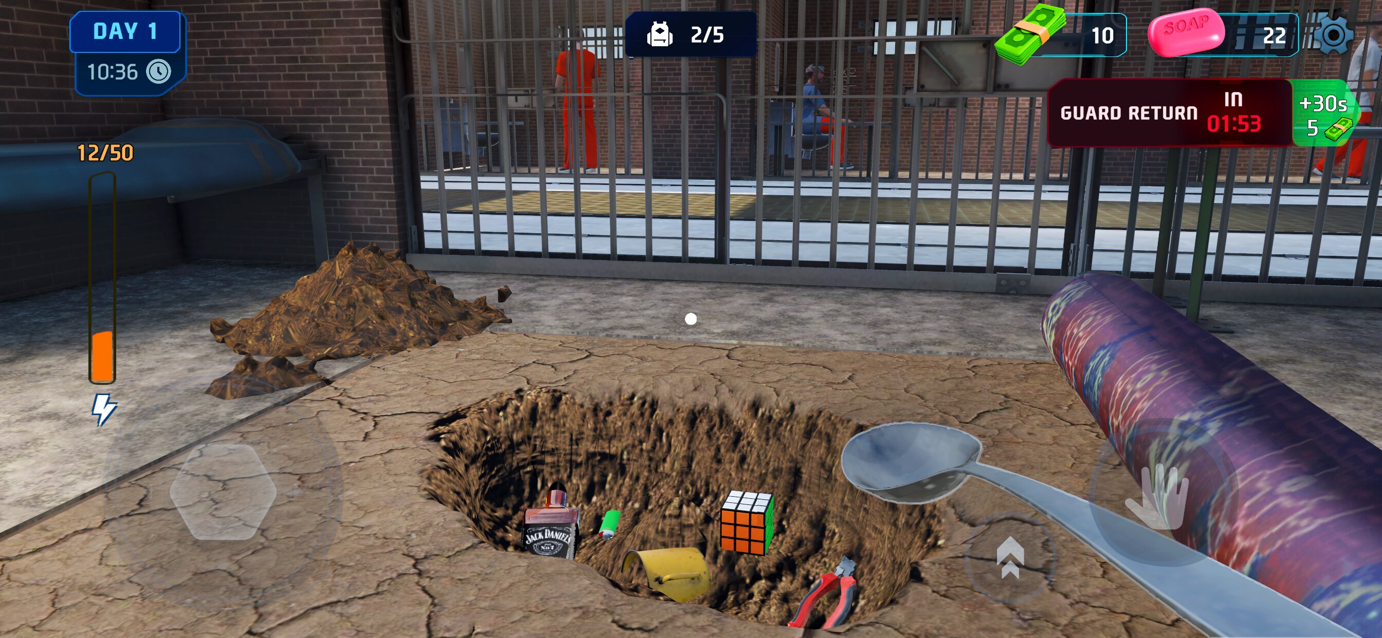 Ваше приключение начинается в холодной камере, окруженной высокими стенами и сторожевыми башнями. Вооружившись лишь ложкой, вы начнете свое тайное подземное путешествие, ночь за ночью осторожно удаляя плитки и землю. Днем вы должны вписаться в тюремную жизнь, работая, пряча инструменты, исследуя секретные уголки и собирая необходимые предметы для обмена с другими заключенными. Реалистичный цикл дня и ночи заставляет вас мудро планировать свои действия, поскольку один неверный шаг может вызвать тревогу и разрушить весь ваш план побега.
