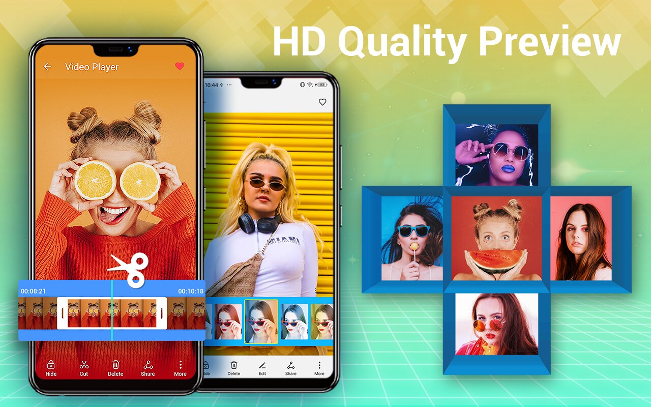 Приложение отличается автоматической организацией, сортируя ваши медиафайлы по дате и позволяя легко и быстро находить все необходимое. Оно предлагает расширенное управление альбомами, поддерживает SD-карты и позволяет скрывать личные фотографии и видео в безопасном, зашифрованном хранилище, невидимом для других приложений. Помимо управления, оно включает в себя комплексный редактор с фильтрами, наклейками, рисунками и настройками освещения, а также быстрый создатель коллажей для публикации в социальных сетях.