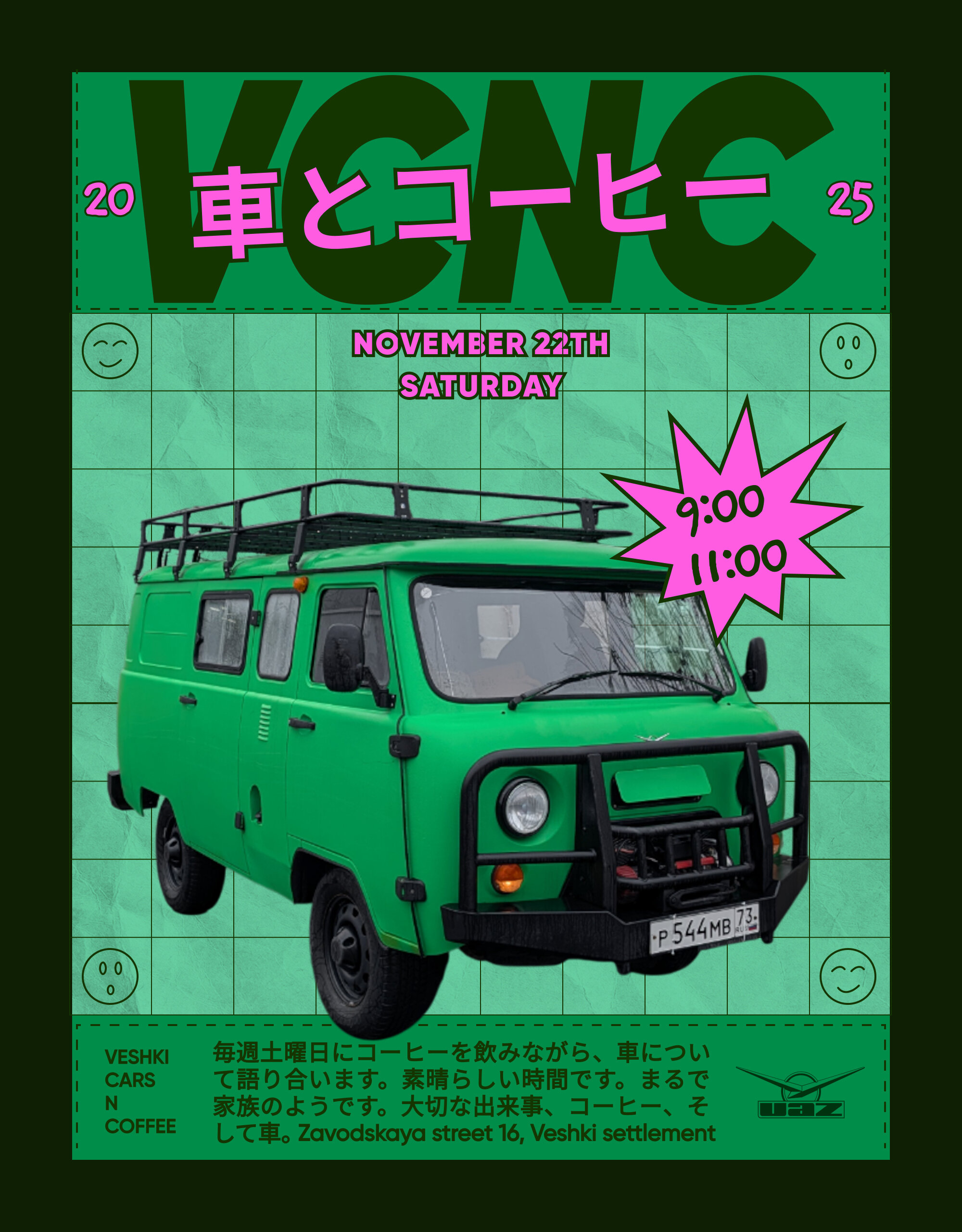 Как и положено автопробегам, нужен красивый старт. В Москве и некоторых других крупных городах России проходят мероприятия формата Cars&Coffee. Идея проста: утро, автомобили, кофе и общение. Часто на таких мероприятиях можно встретить увлечённых энтузиастов и интересные автомобили. Посчитав это отличным форматом для старта, договорился с организаторами, и у нас даже появилась афиша! Да и будем честны, СГР на улицах Москвы сейчас гость нечастый, так что аудитории будет интересно посмотреть на эту легенду.