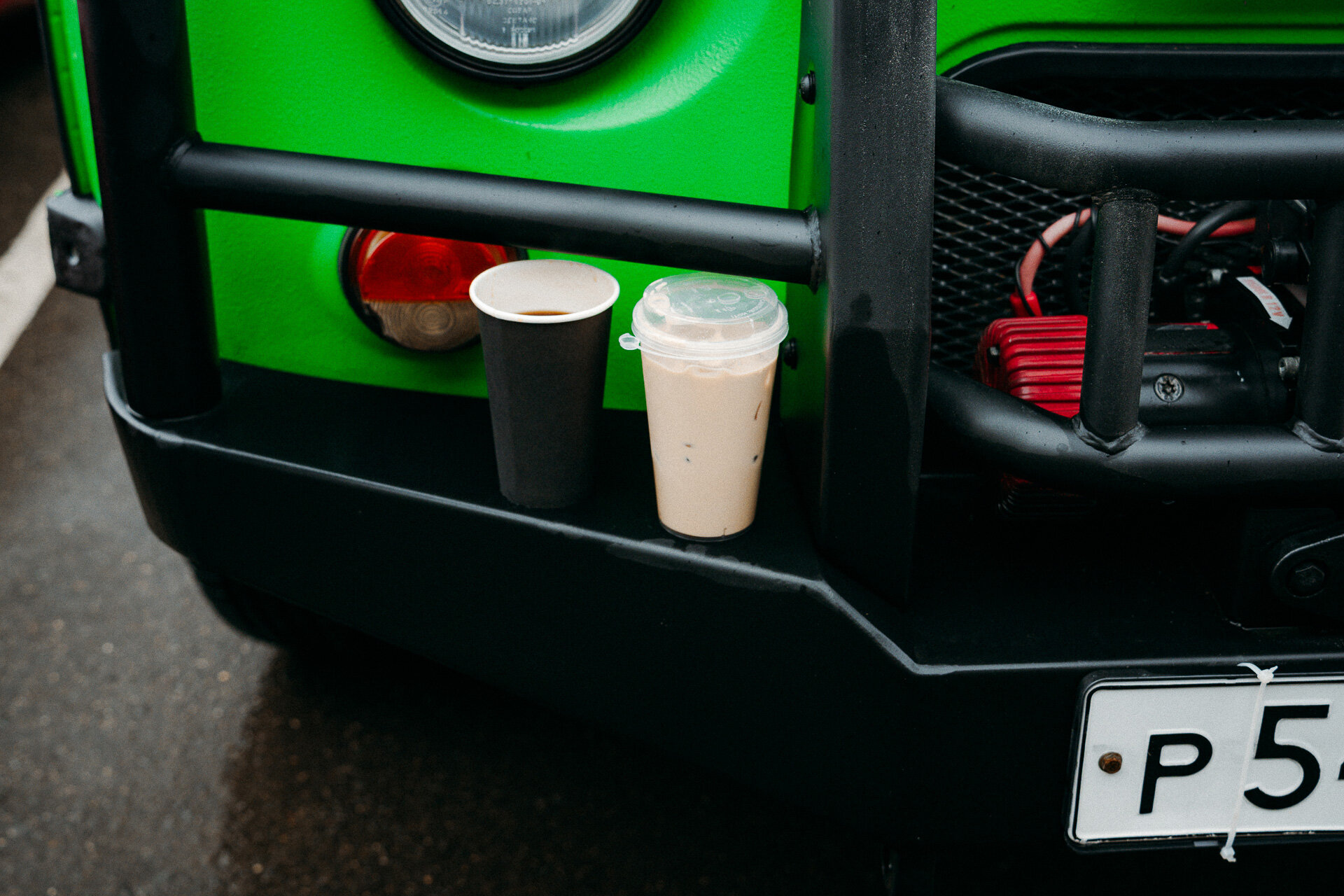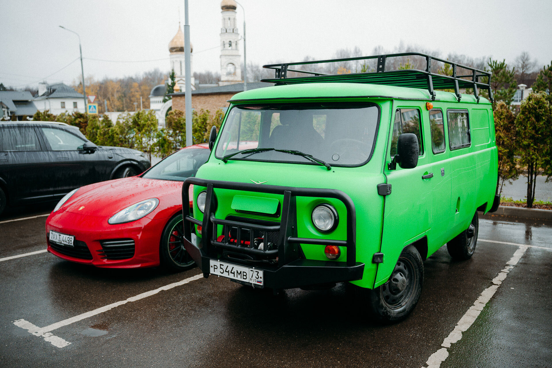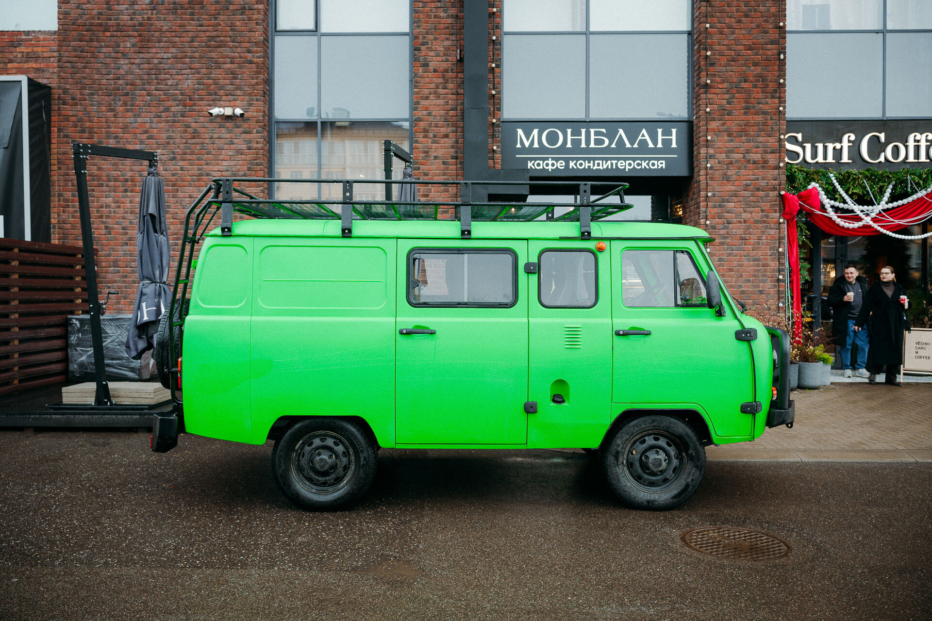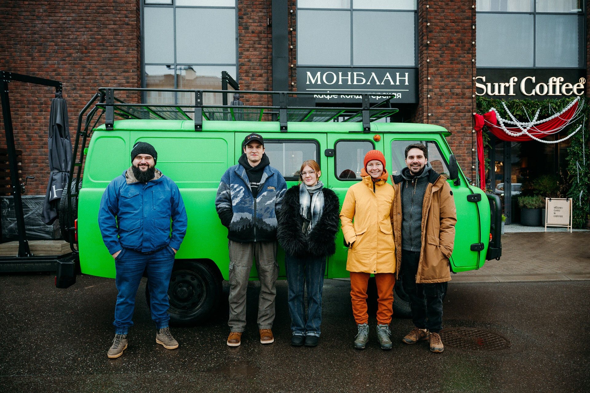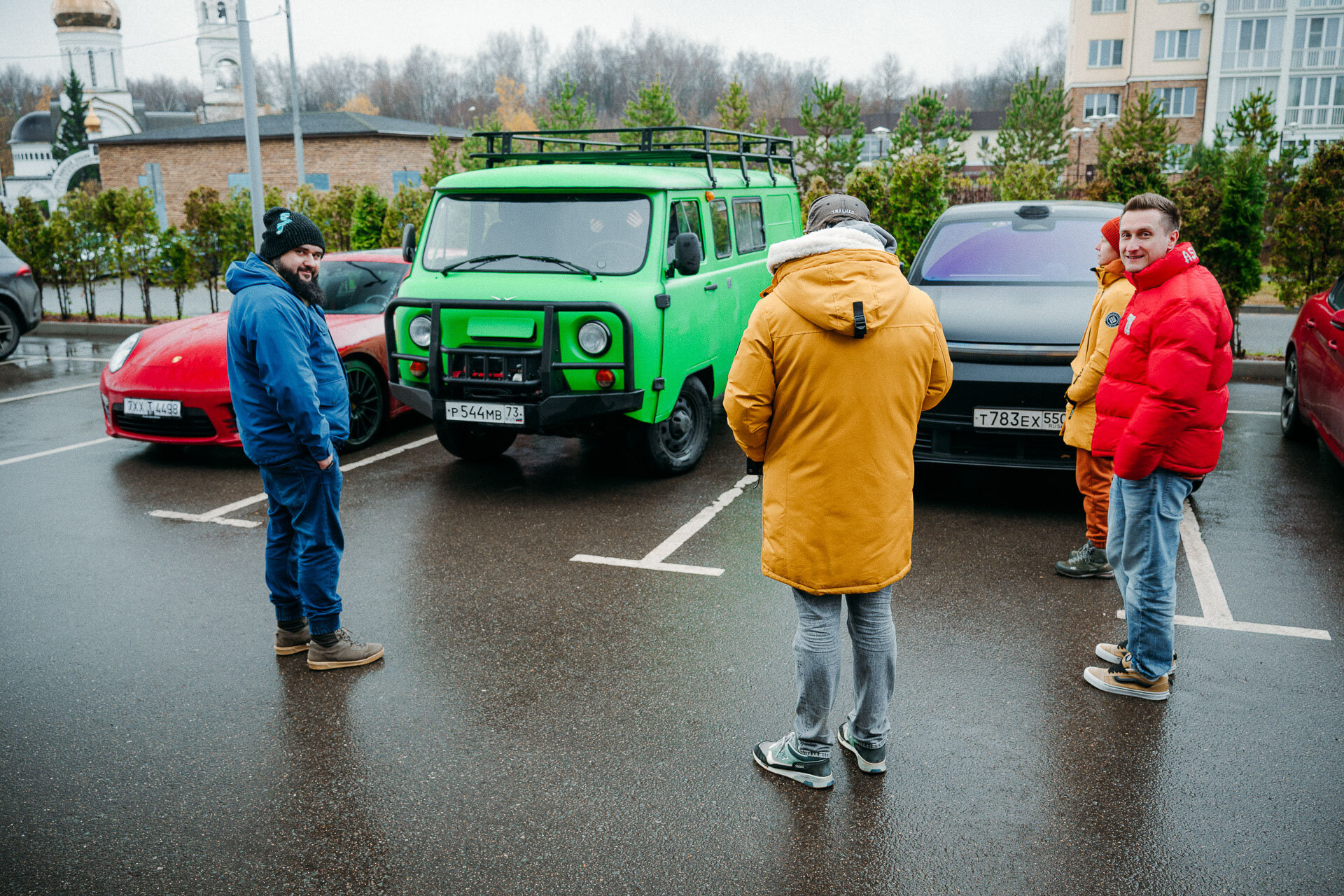 9 утра. С погодой не повезло. Но все участники пробега на месте. Аудитория утренней автовстречи дивится не столько самой «Буханке», сколько её брутальному обвесу (всё по заводу!) и яркому, если не сказать ядрёному, зелёному цвету. Завтракаем, пьём кофе, рассказываем про наш план путешествия… решаем посетить ещё один московский Cars&Coffee и потом уже начинать путешествие.