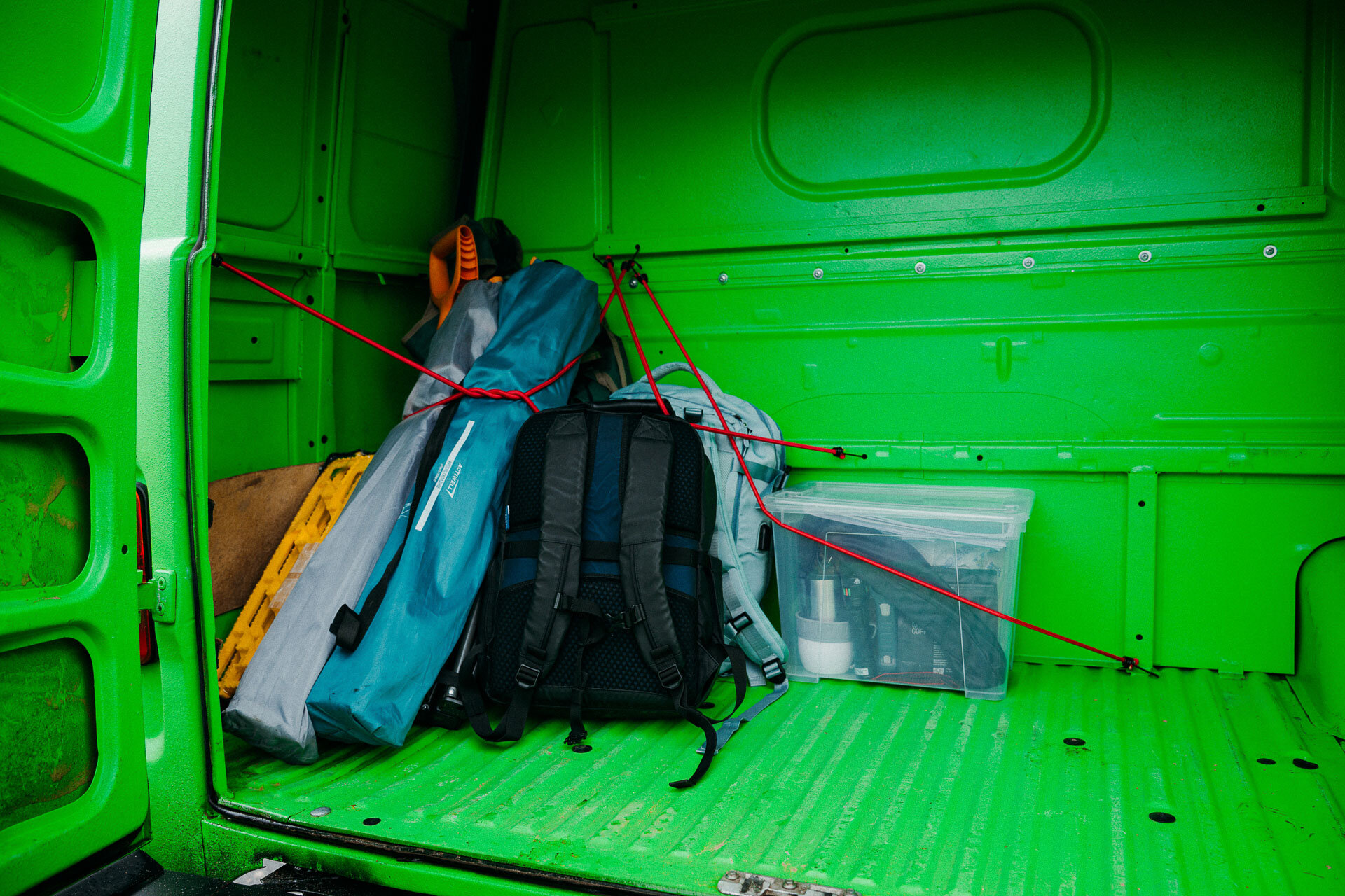 На первом этапе мы столкнулись с первым, и, пожалуй, главным неудобством конкретной версии автомобиля: процесс попадания в багажник долгий, трюм огромный, но грамотно организовать пространство сложновато. По своему опыту предварительно взял эластичные стяжки для фиксации вещей. Без этого тут никуда.