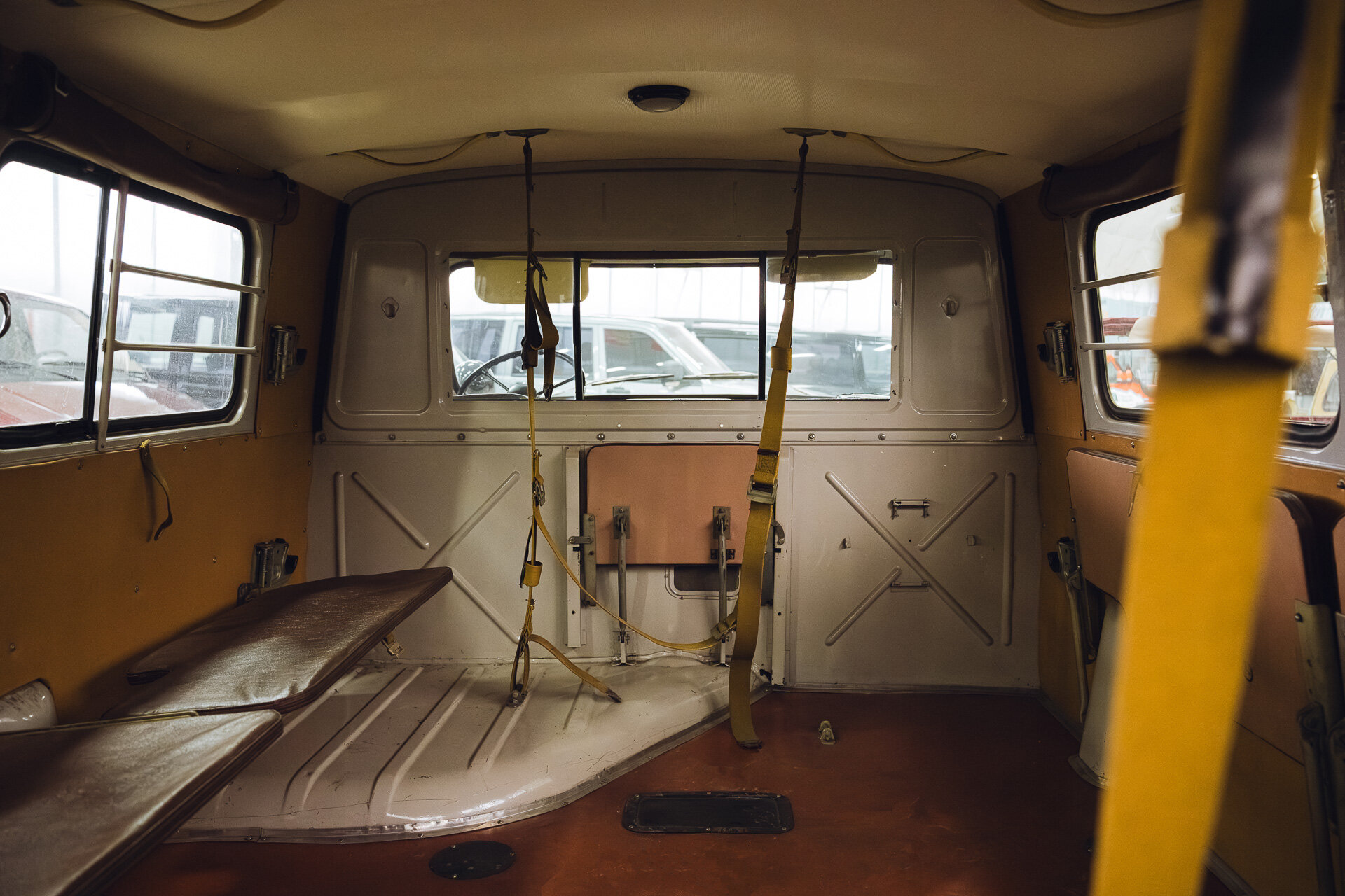 Какие ещё изменения претерпела ранняя версия? Представьте, у неё передние двери открывались с другой стороны, то есть петли были там, где сейчас ручка замка. Уже к 1959 году навеску двери поменяли на более привычную.