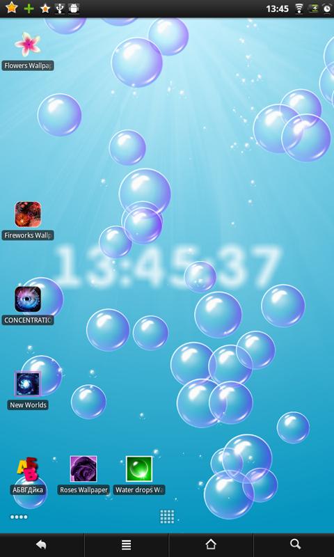 Bubbles & Clock — живые обои для Android-смартфонов и планшетов, которые сочетают в себе два вида обоев: воздушные пузырьки и цифровые часы. Пользователь может выбирать понравившиеся обои, настраивать цветовые схемы, контролировать количество, скорость и размер пузырей, настраивать размер, прозрачность и размытость часов и многое другое.