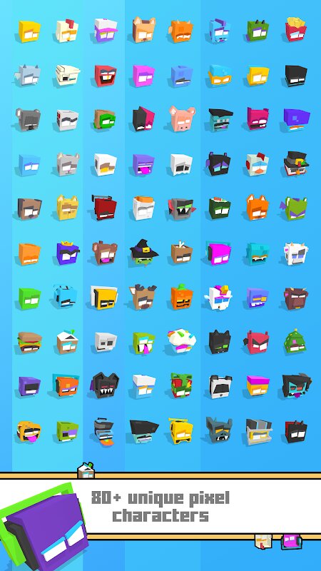 Продолжите свои приключения с PXL! Этот красочный пиксельный мир без тревог полон достижений и неожиданных усилений. Возможности безграничны: здесь можно сжиматься и расти, ускоряться, зарабатывать больше пиксельных очков и пополнять коллекцию забавных персонажей.