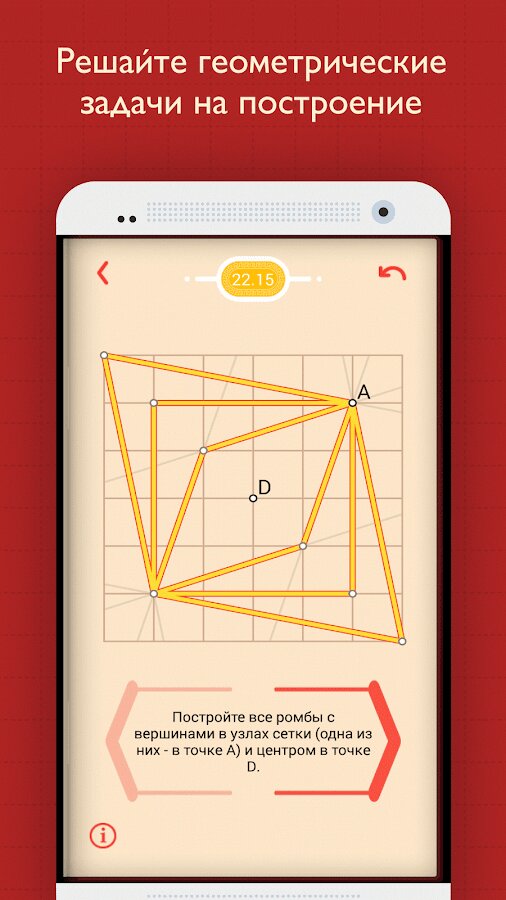 Если же у вас не сложились отношения с геометрией, Пифагория поможет вам взглянуть на этот предмет по-новому. Мы получаем множество отзывов, что Пифагория и Euclidea позволили увидеть красоту и естественность геометрических построений и даже втянуться в решение задач. Попробуйте!