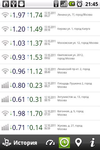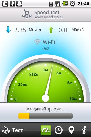 QIP Speed Test — простой и удобный измеритель скорости интернет-соединения вашего Android-смартфона или планшета. Позволяет измерять скорость входящего и исходящего трафика как для мобильных сетей, так и для Wi-Fi. История измерений сохраняется в программе и может быть просмотрена на карте. В браузере можно увидеть измерения скорости для всех пользователей QIP Speed Test.
