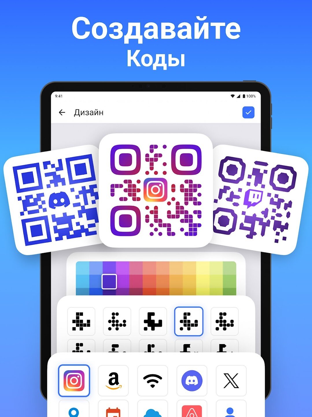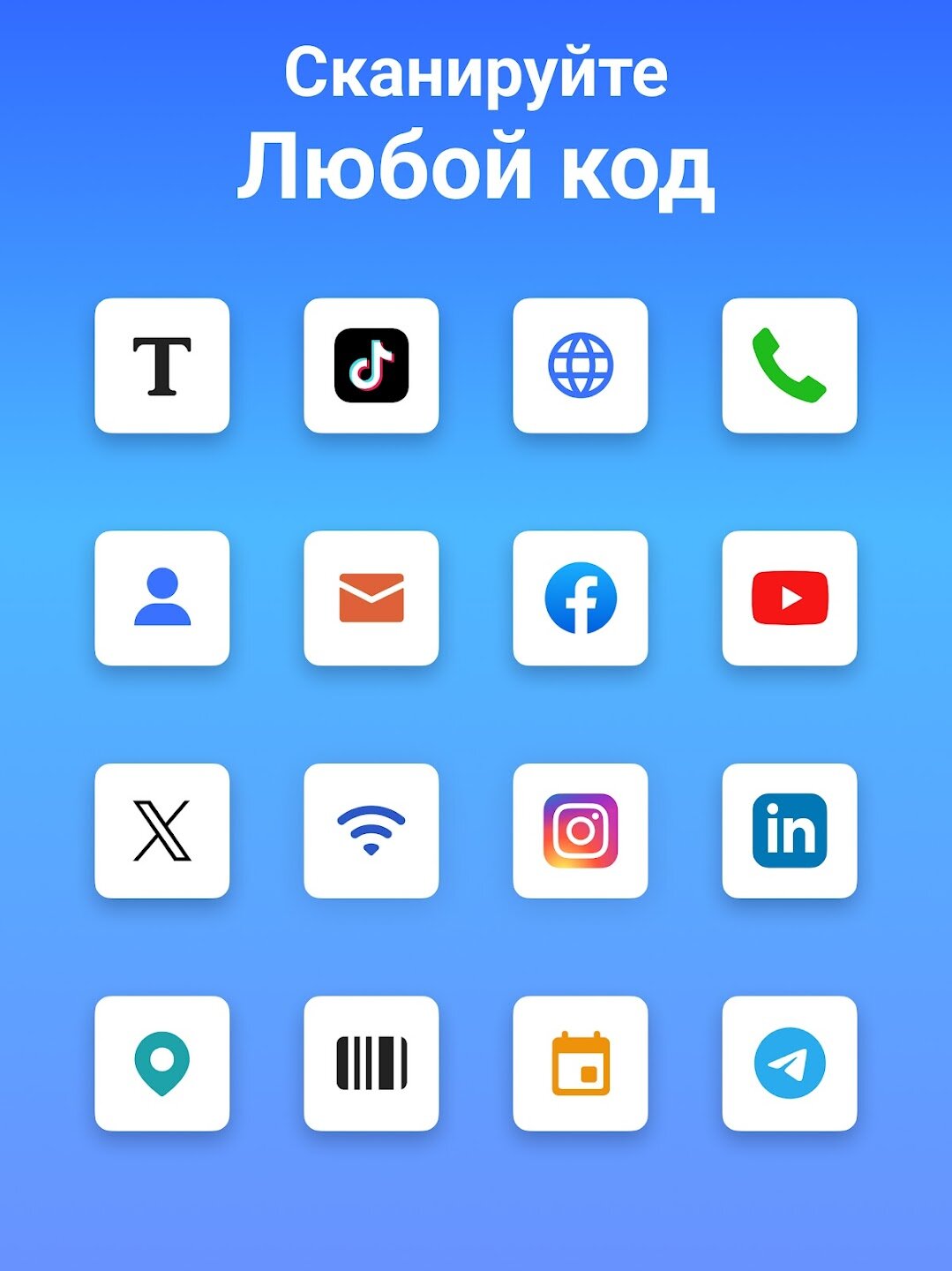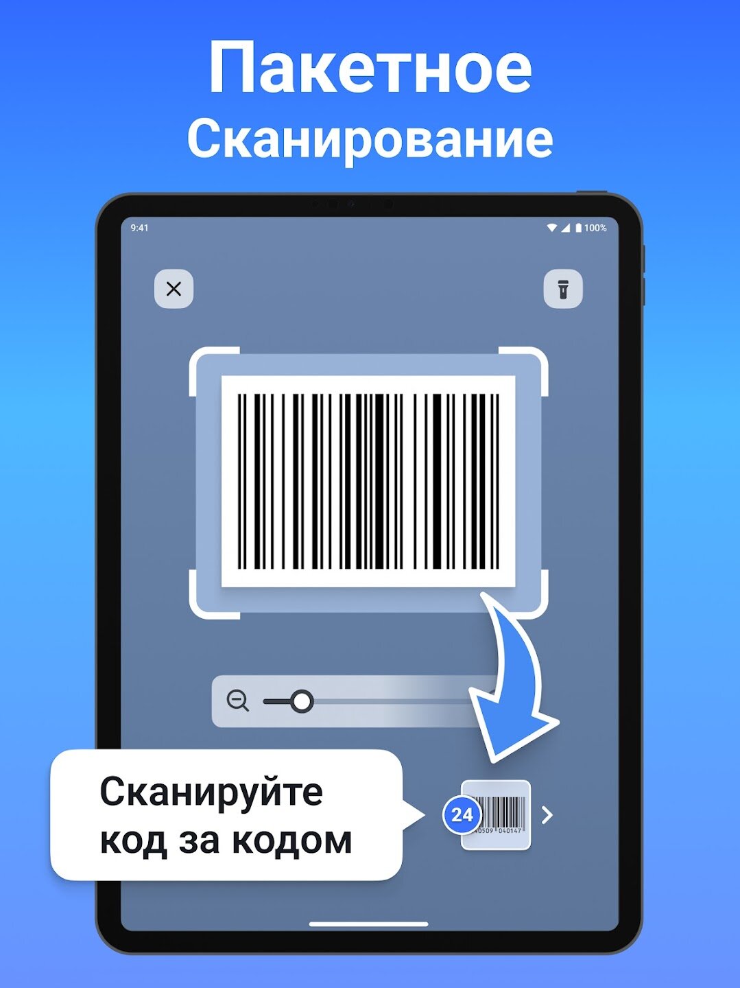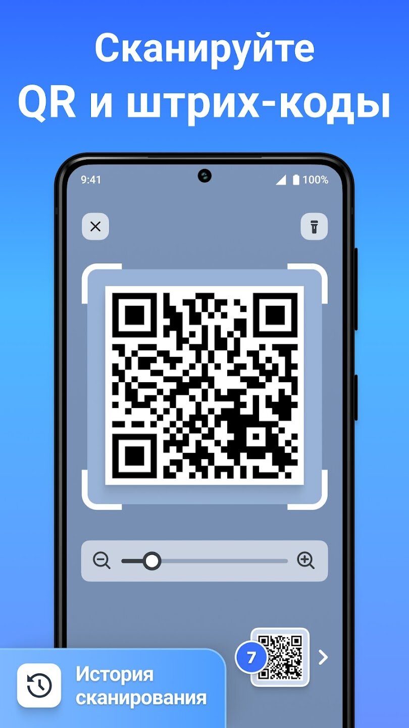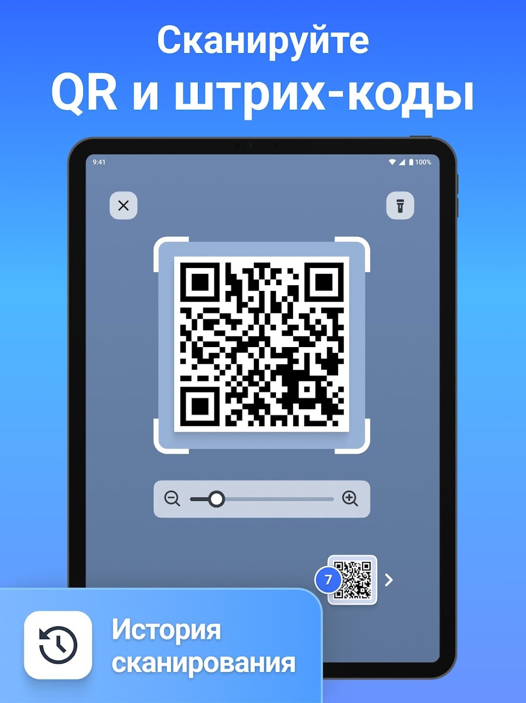 - Быстрое и надежное офлайн-сканирование всех форматов QR-кодов и штрих-кодов.
