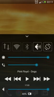 Позволяет быстро, не отрываясь от серфинга/игры/переписки включить или выключить Bluetooth, Wi-Fi, отрегулировать яркость, переключить играющий трек.