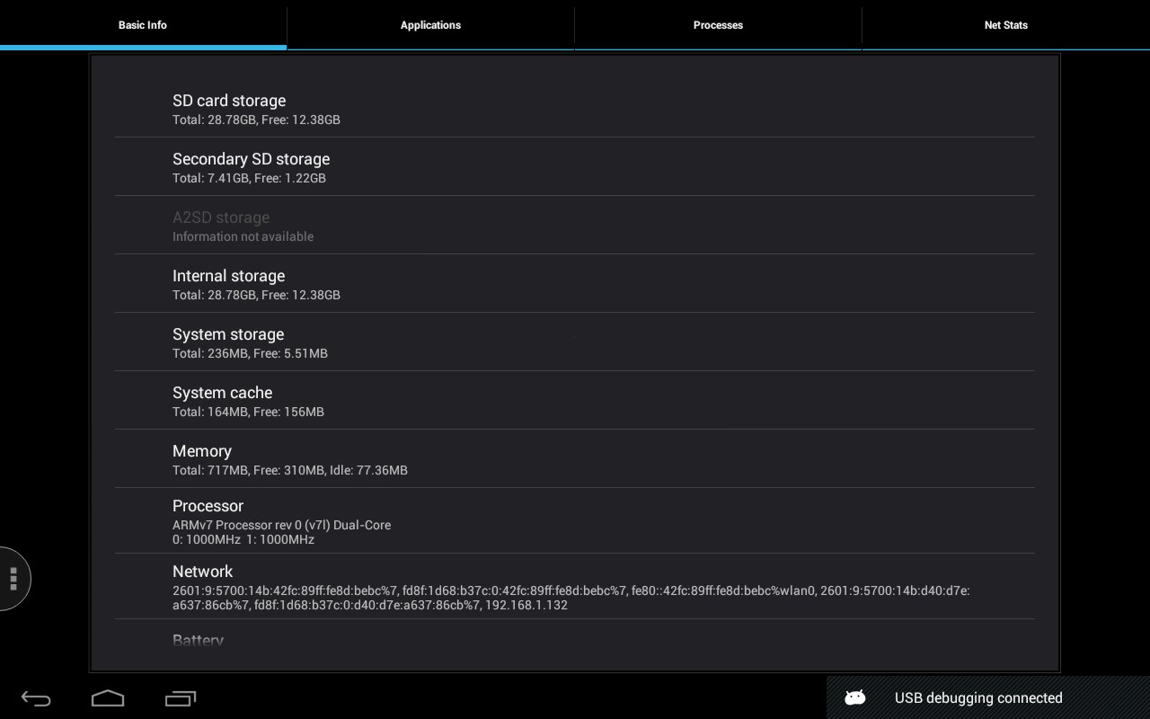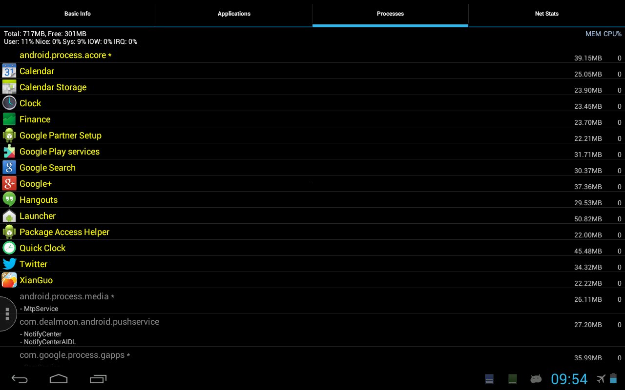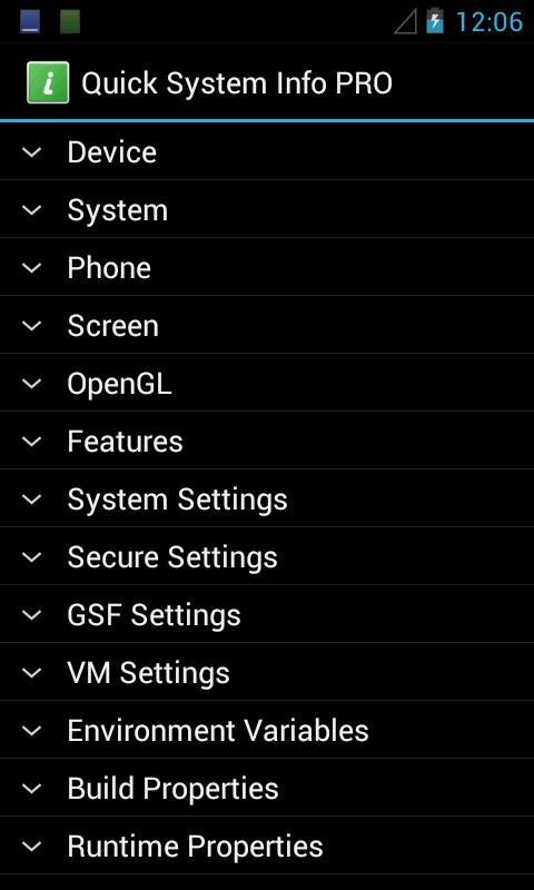 Quick System Info PRO — приложение для Android, позволяющее быстро просмотреть подробную информацию о нагрузке на процессор, оперативную память, увидеть список установленных программ, список активных процессов в памяти смартфона. Для некоторых параметров можно просмотреть еще и более подробную информацию. Например, температуру батареи, параметры встроенного акселерометра и другие.