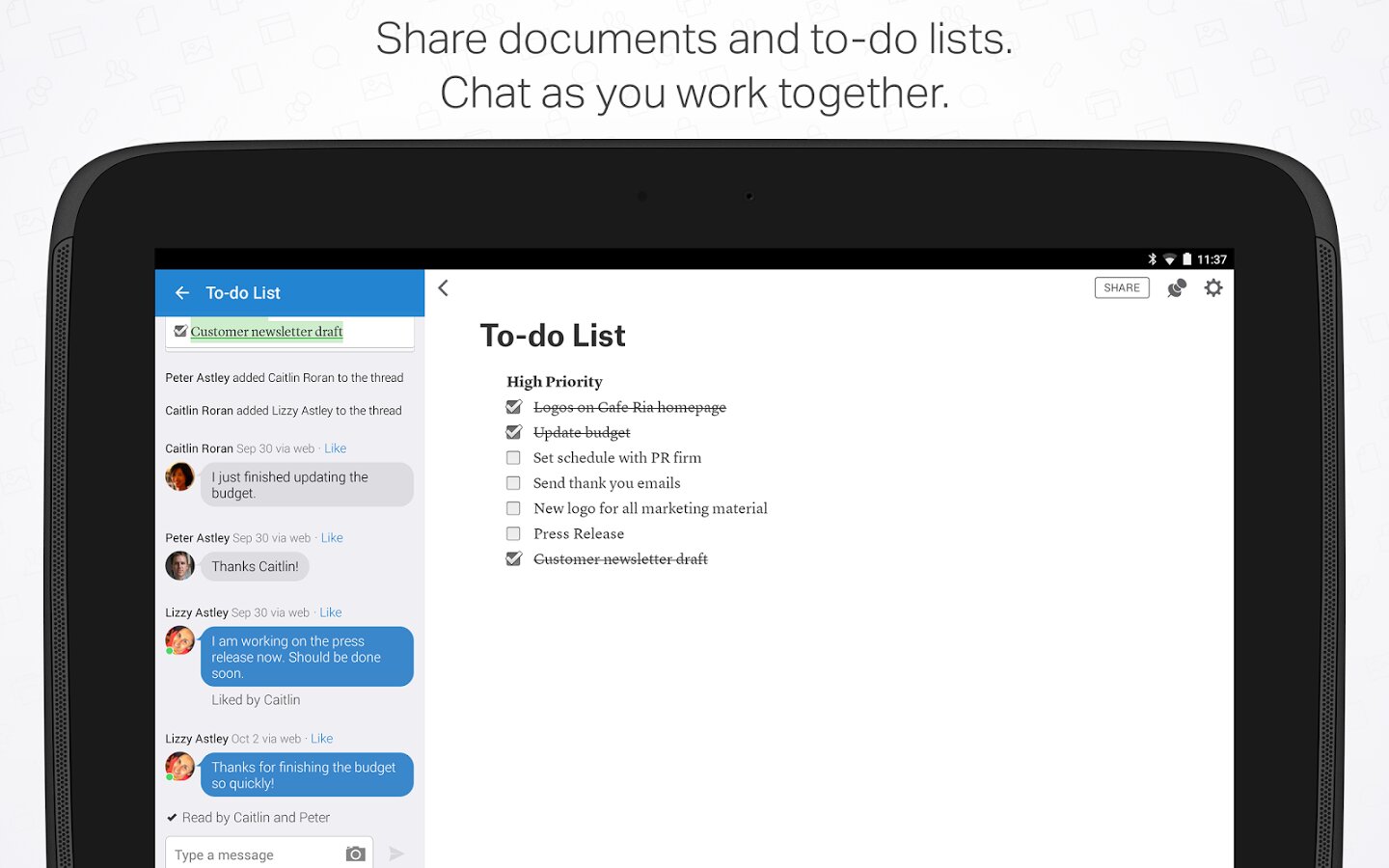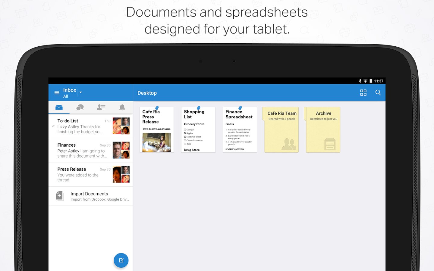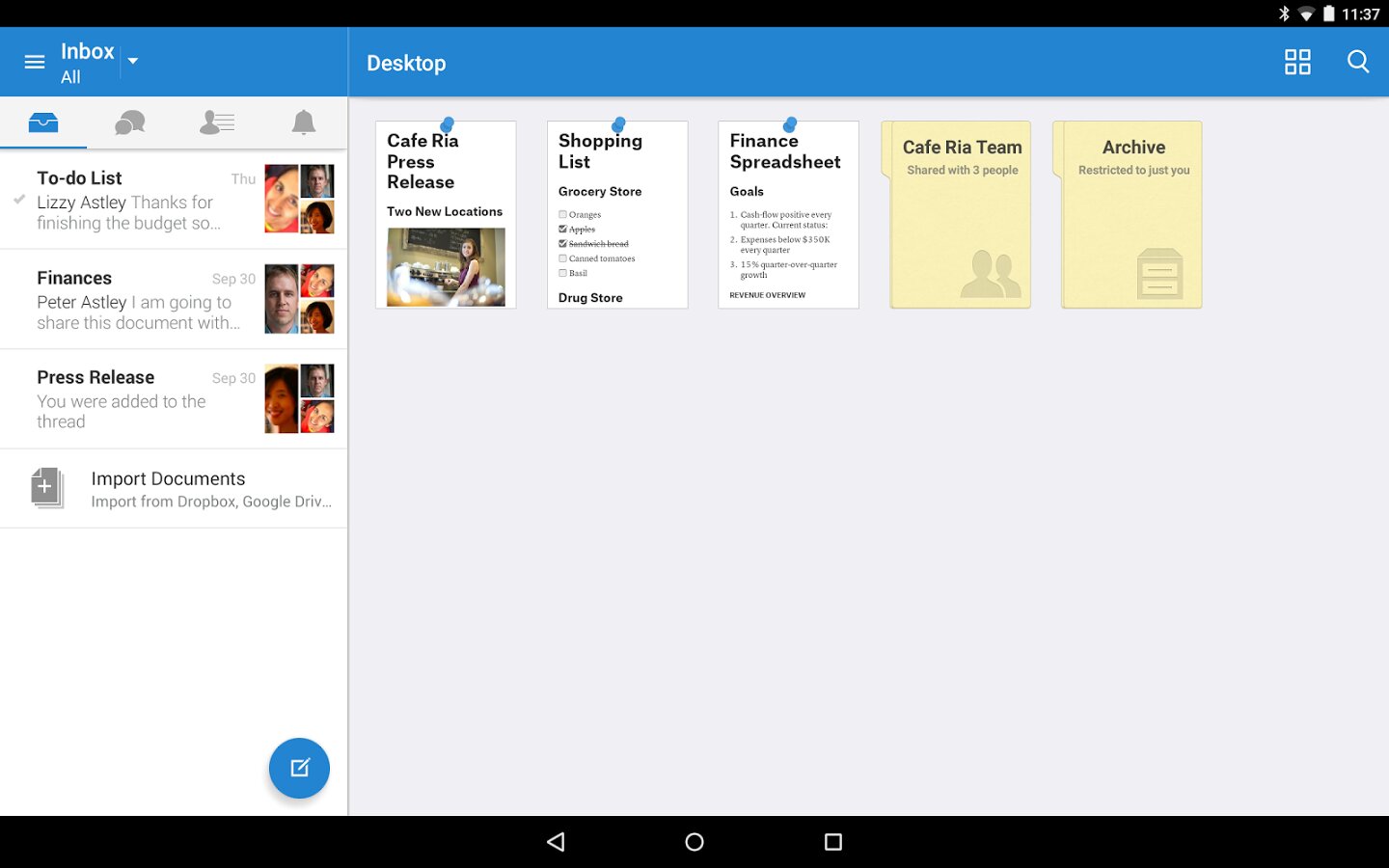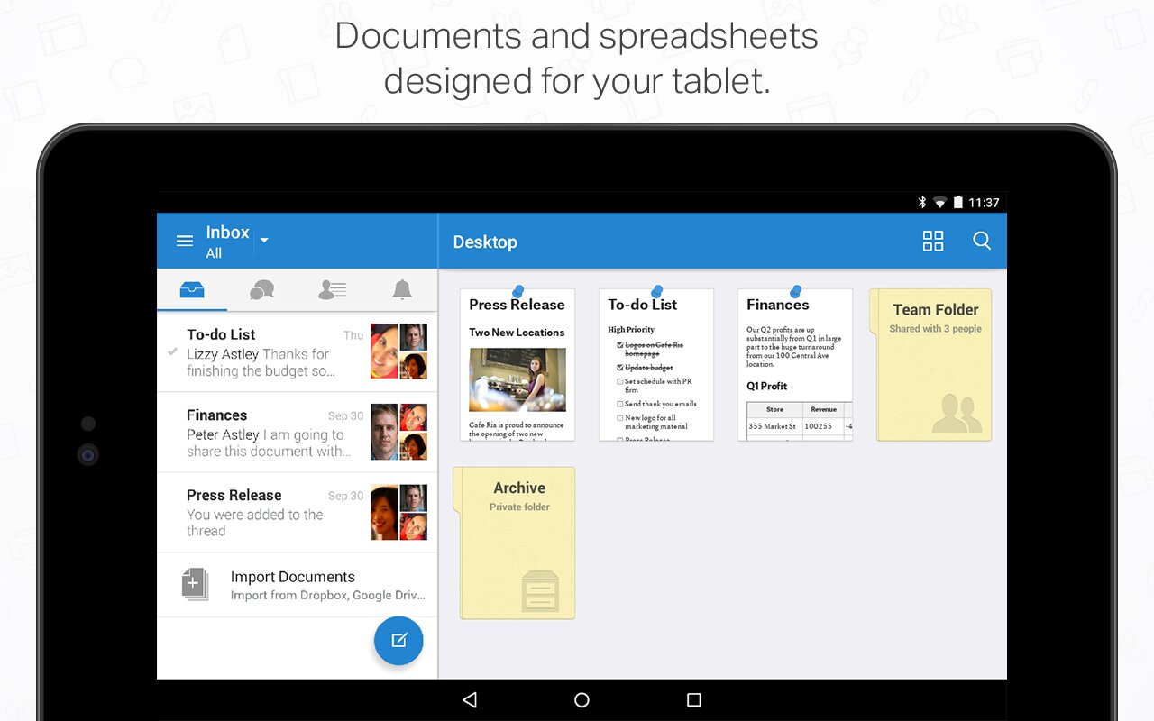 Делайте заметки, упорядочивайте списки задач и работайте совместно с другими сотрудниками компании. Предоставляйте доступ к папкам, чтобы работать над служебными или домашними проектами. Все функции идеально работают в автономном режиме, а при подключении к Интернету выполняется синхронизация.