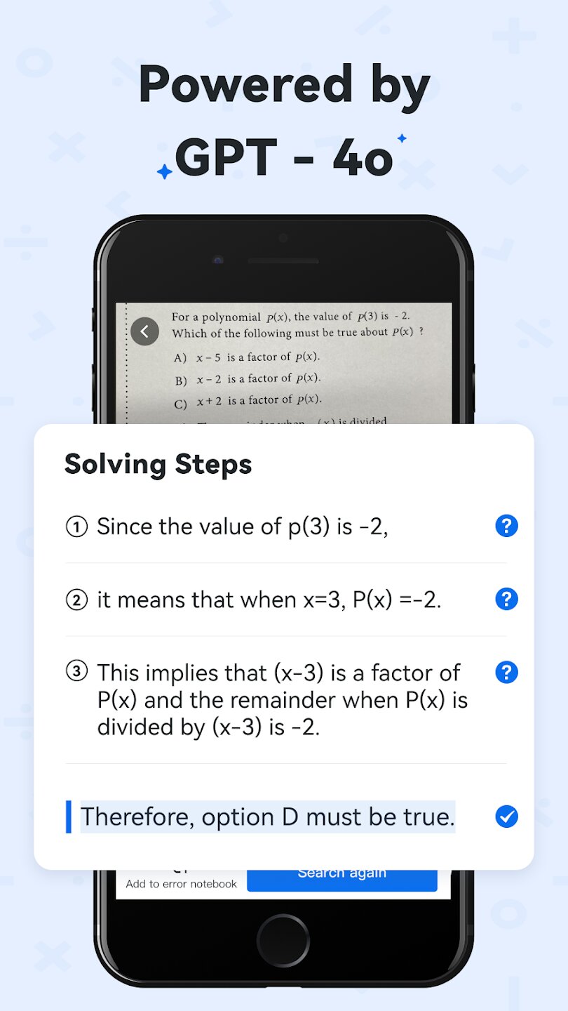 - Решатель задач на базе искусственного интеллекта для мгновенных пошаговых решений.