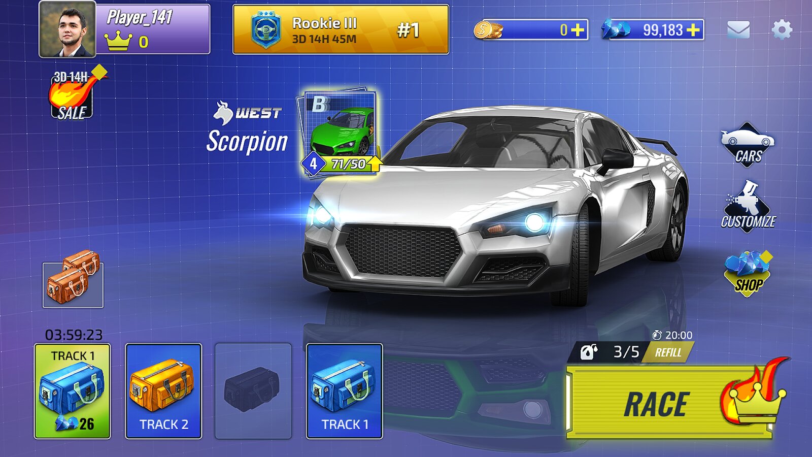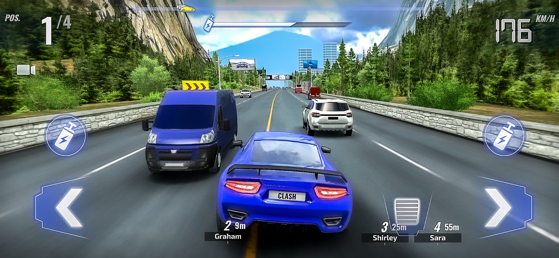 В Racing Clash вы будете участвовать в гонках по многолюдным городам, пустыням, пляжам и другим локациям. Также вы сможете добиться больше прогресса, участвуя в более сложных уличных гонках с «повышенными ставками».