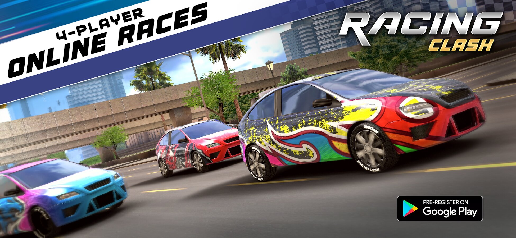 Racing Clash объединяет игроков со всего мира, делая игровой процесс еще насыщеннее и увлекательнее. Станьте частью этой вселенной прямо сейчас! Участвуйте в умопомрачительных гонках для 4 игроков, совершенствуйтесь и становитесь победителем. Вас ждут самые роскошные и мощные автомобили и маслкары, разнообразные гоночные трассы, множество трофеев и бонусов. Каждый автомобиль отличается своими характеристиками и мощностью, что, несомненно, повышает шансы на победу. Так что скорее выбирайте лучший автомобиль и отправляйтесь покорять мир гонок Racing Clash!